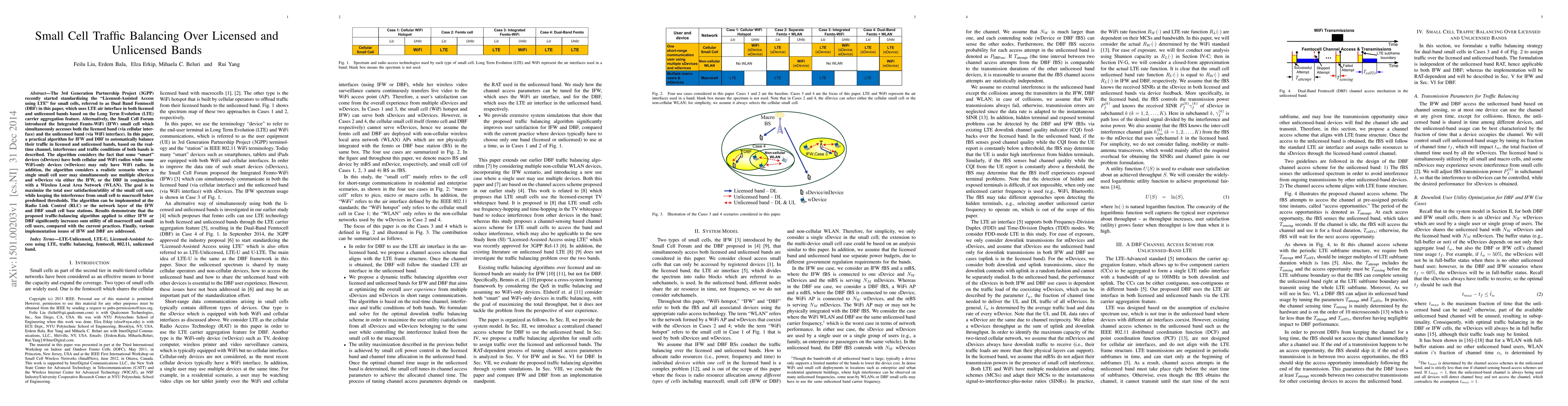 This paper proposes an algorithm for balancing traffic between licensed and unlicensed bands in two small cell technologies: Dual Band Femtocell (DBF) and Integrated Femto-WiFi (IFW). The algorithm optimizes user satisfaction by considering real-time channel and interference conditions, while ensuring interference from small cells to macrocells remains below thresholds. Results show significant improvements in total user utility compared to current practices.