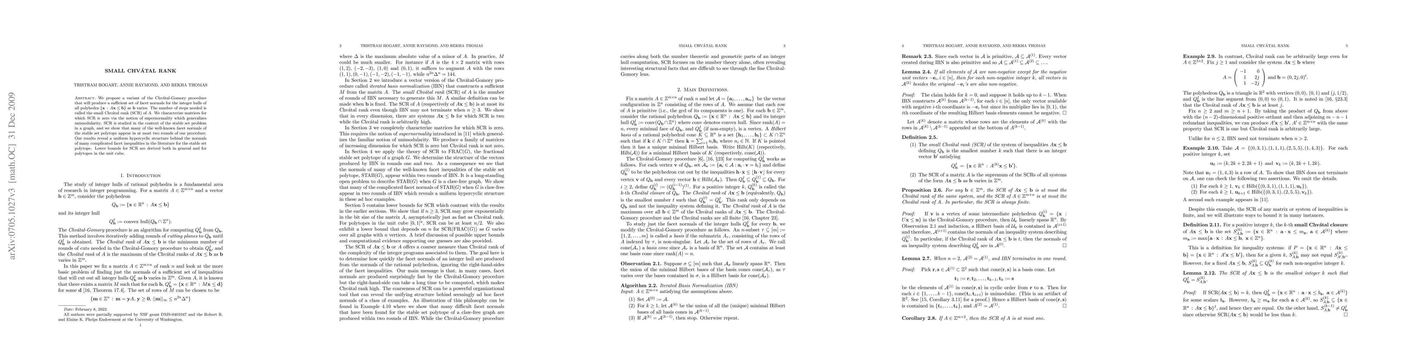 We propose a variant of the Chvatal-Gomory procedure that will produce a sufficient set of facet normals for the integer hulls of all polyhedra {xx : Ax <= b} as b varies. The number of steps needed is called the small Chvatal rank (SCR) of A. We characterize matrices for which SCR is zero via the notion of supernormality which generalizes unimodularity. SCR is studied in the context of the stable set problem in a graph, and we show that many of the well-known facet normals of the stable set polytope appear in at most two rounds of our procedure. Our results reveal a uniform hypercyclic structure behind the normals of many complicated facet inequalities in the literature for the stable set polytope. Lower bounds for SCR are derived both in general and for polytopes in the unit cube.
