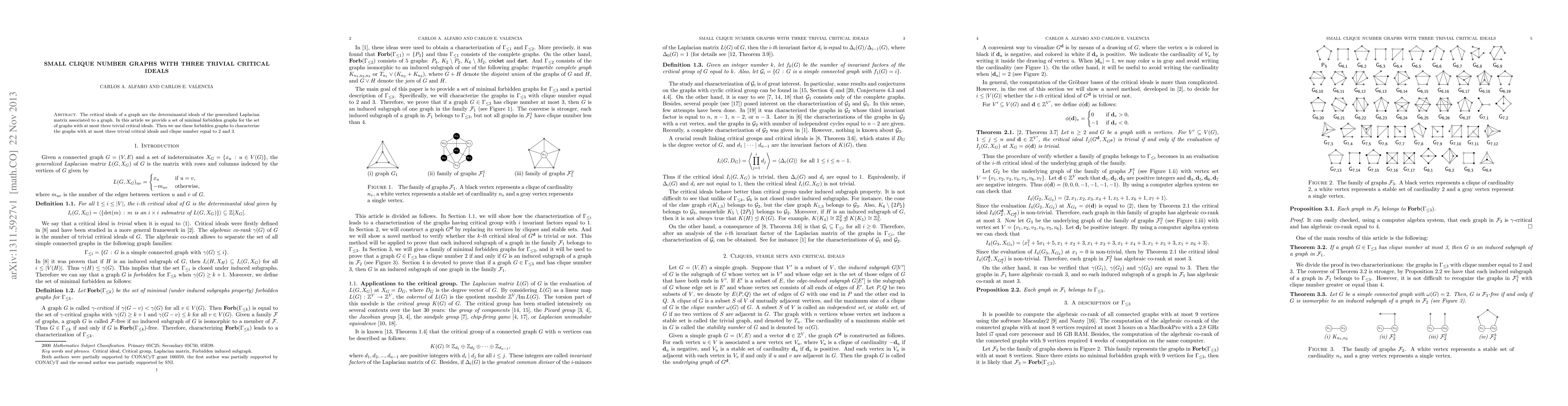 The critical ideals of a graph are the determinantal ideals of the generalized Laplacian matrix associated to a graph. In this article we provide a set of minimal forbidden graphs for the set of graphs with at most three trivial critical ideals. Then we use these forbidden graphs to characterize the graphs with at most three trivial critical ideals and clique number equal to 2 and 3.