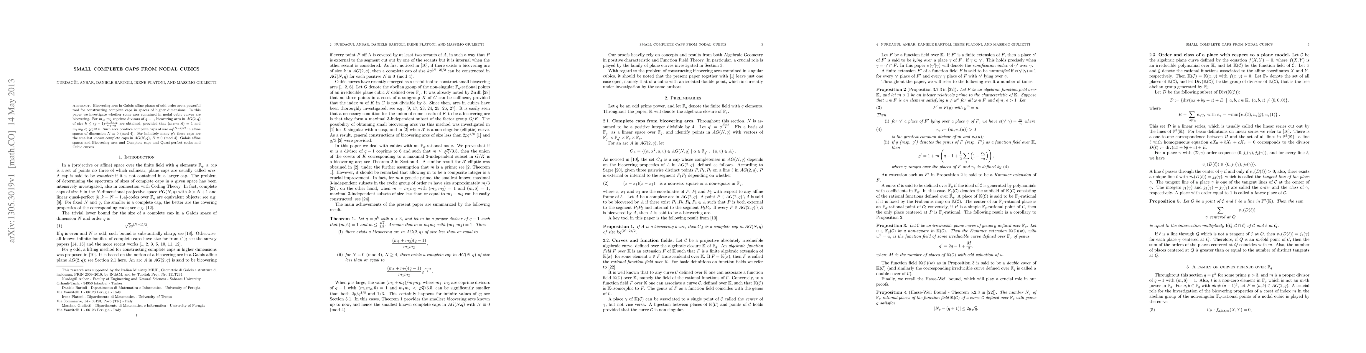 Bicovering arcs in Galois affine planes of odd order are a powerful tool for constructing complete caps in spaces of higher dimensions. In this paper we investigate whether some arcs contained in nodal cubic curves are bicovering. For $m_1$, $m_2$ coprime divisors of $q-1$, bicovering arcs in $AG(2,q)$ of size $k\le (q-1)\frac{m_1+m_2}{m_1m_2}$ are obtained, provided that $(m_1m_2,6)=1$ and $m_1m_2<\sqrt[4]{q}/3.5$. Such arcs produce complete caps of size $kq^{(N-2)/2}$ in affine spaces of dimension $N\equiv 0 \pmod 4$. For infinitely many $q$'s these caps are the smallest known complete caps in $AG(N,q)$, $N \equiv 0 \pmod 4$.