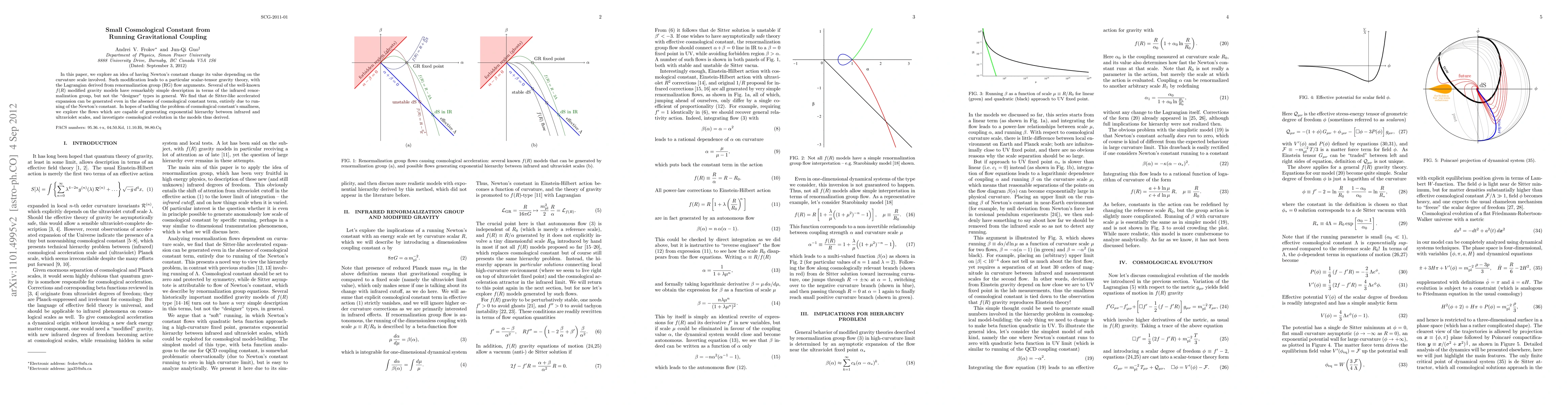 In this paper, we explore an idea of having Newton's constant change its value depending on the curvature scale involved. Such modification leads to a particular scalar-tensor gravity theory, with the Lagrangian derived from renormalization group (RG) flow arguments. Several of the well-known f(R) modified gravity models have remarkably simple description in terms of the infrared renormalization group, but not the "designer" types in general. We find that de Sitter-like accelerated expansion can be generated even in the absence of cosmological constant term, entirely due to running of the Newton's constant. In hopes of tackling the problem of cosmological constant's smallness, we explore the flows which are capable of generating exponential hierarchy between infrared and ultraviolet scales, and investigate cosmological evolution in the models thus derived.