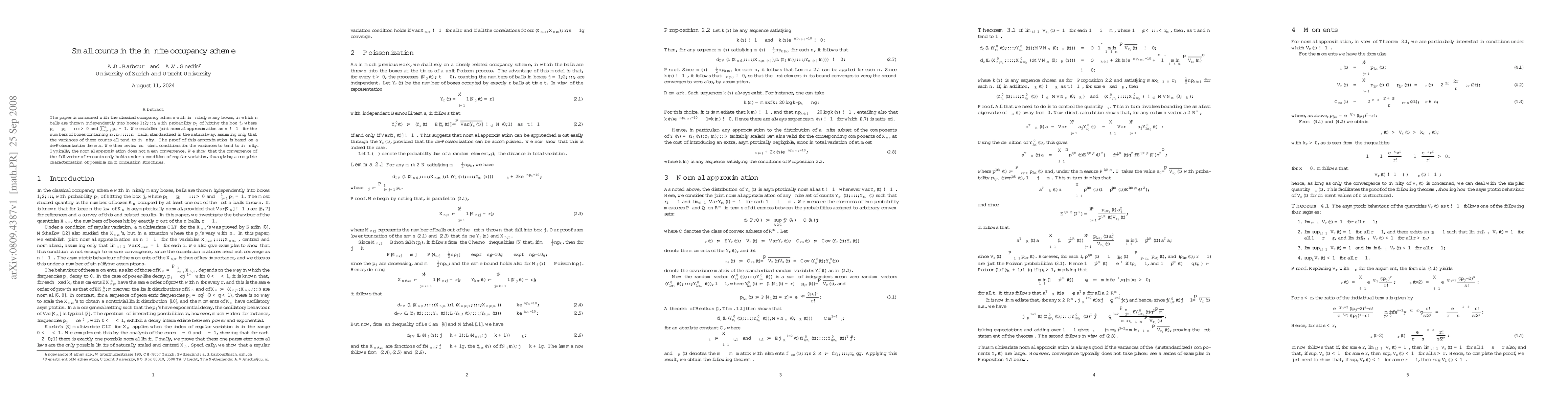 Researchers establish a joint normal approximation for the numbers of boxes containing balls in an infinite occupancy scheme as n approaches infinity, under conditions that the variances of these counts tend to infinity. The study also provides sufficient conditions for variance growth and characterizes limit correlation structures.
