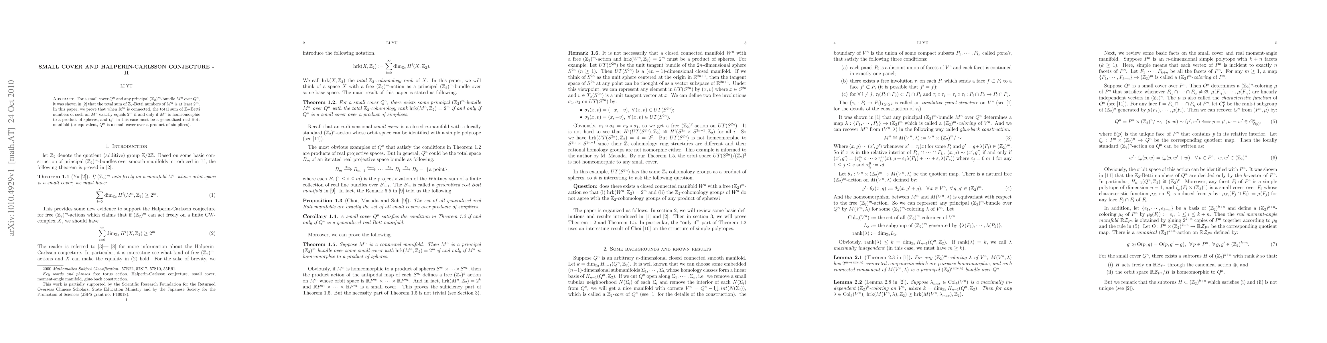 This paper proves that for a connected principal (Z_2)^m-bundle over a small cover Q^n, the total sum of Z_2-Betti numbers equals 2^m if and only if the bundle is homeomorphic to a product of spheres, with Q^n being a generalized real Bott manifold or a small cover over a product of simplices.