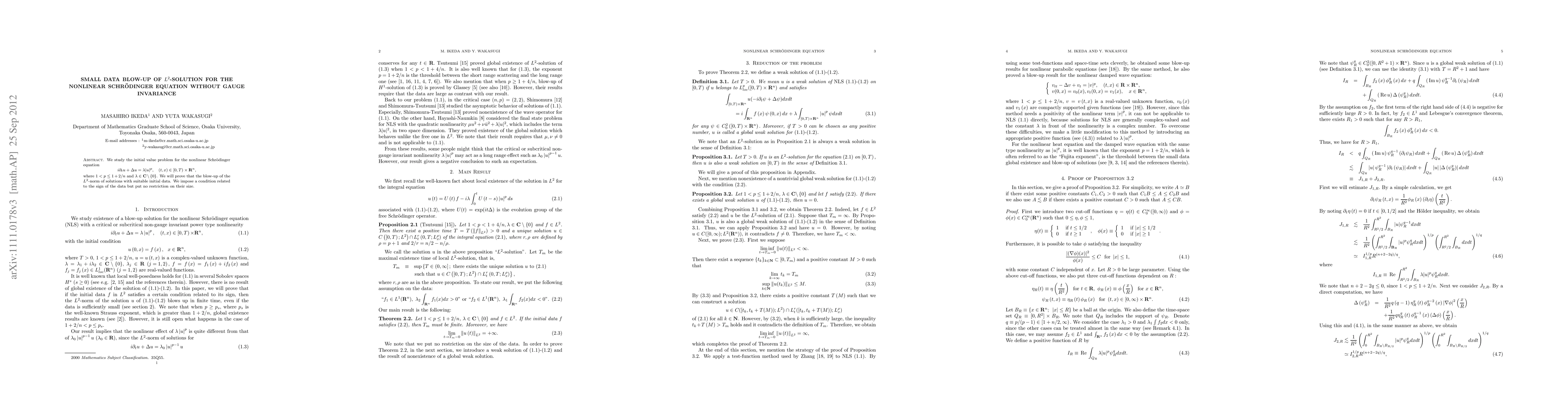 We study the initial value problem for the nonlinear Schr\"odinger equation. We will prove that the blow-up of the L^{2}-norm of solutions with suitable initial data. We impose a condition related to the sign of the data but put no restriction on their size.