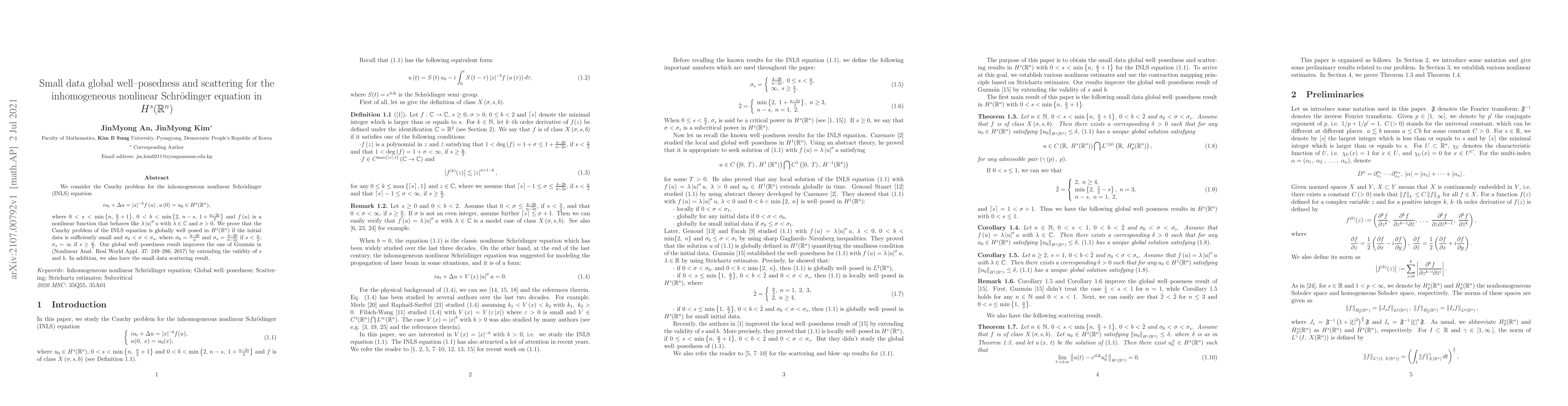 u\left(0\right)=u_{0} \in H^{s} (\mathbb R^{n}),\] where $00$. We prove that the Cauchy problem of the INLS equation is