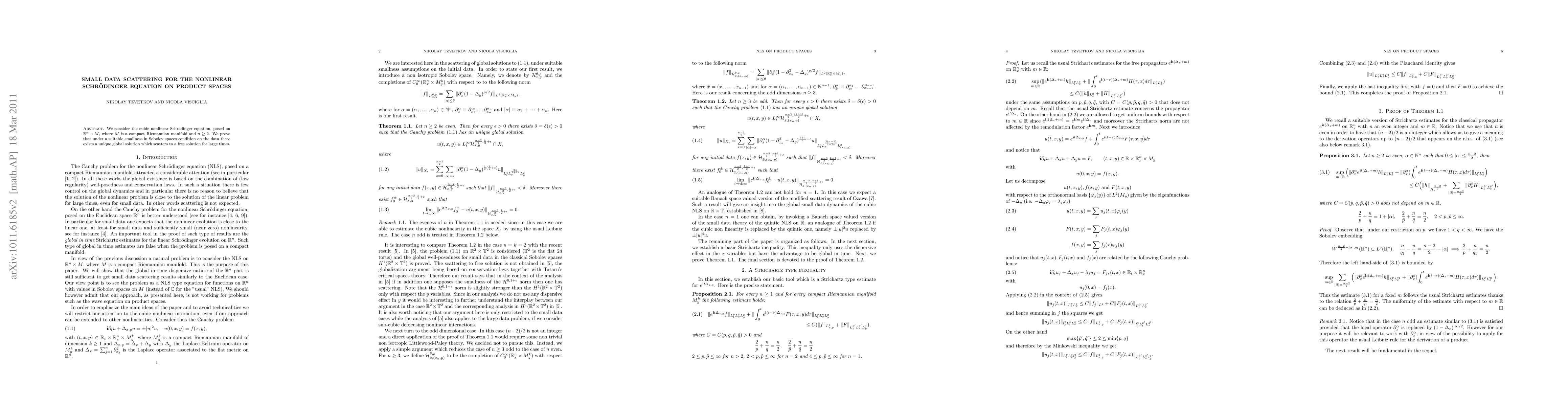 We consider the cubic nonlinear Schr\"odinger equation, posed on $\R^n\times M$, where $M$ is a compact Riemannian manifold and $n\geq 2$. We prove that under a suitable smallness in Sobolev spaces condition on the data there exists a unique global solution which scatters to a free solution for large times.