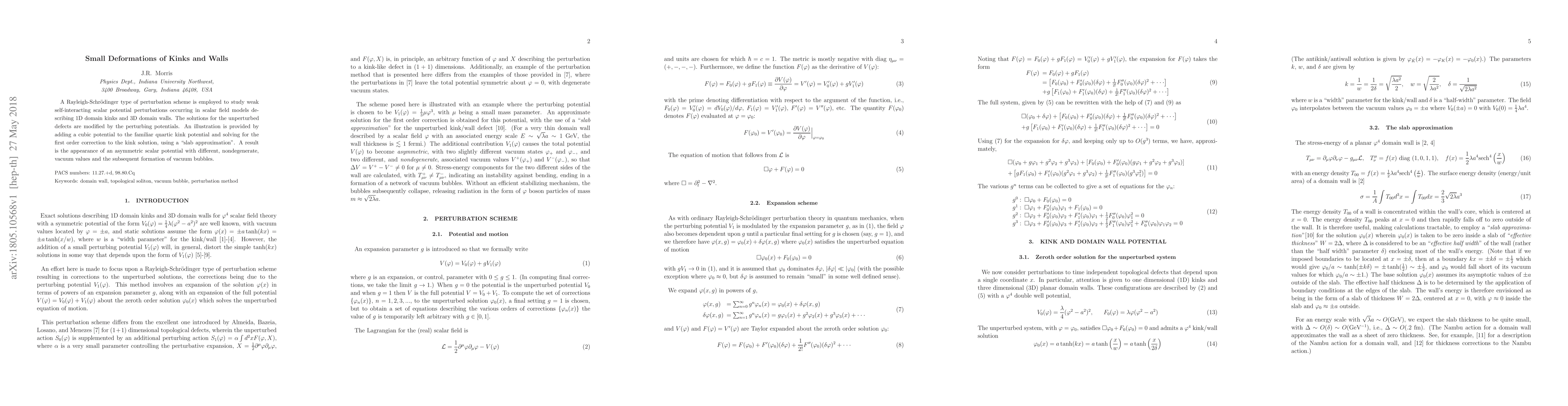 Researchers used a perturbation scheme to study how small deformations in kinks and domain walls affect their behavior. These distortions lead to the formation of vacuum bubbles with distinct properties.
