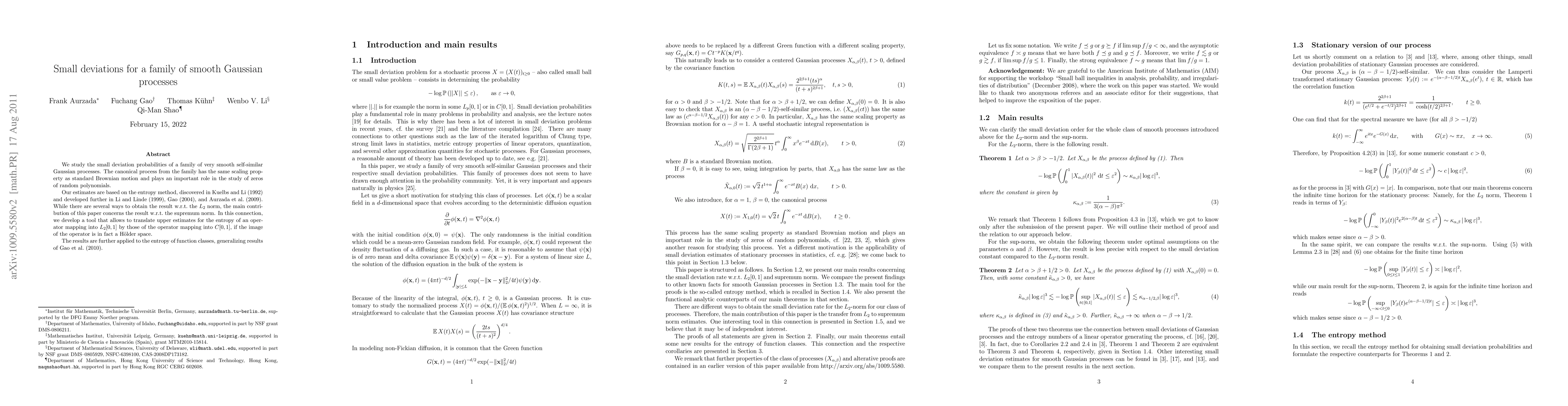 We study the small deviation probabilities of a family of very smooth self-similar Gaussian processes. The canonical process from the family has the same scaling property as standard Brownian motion and plays an important role in the study of zeros of random polynomials. Our estimates are based on the entropy method, discovered in Kuelbs and Li (1992) and developed further in Li and Linde (1999), Gao (2004), and Aurzada et al. (2009). While there are several ways to obtain the result w.r.t. the $L_2$ norm, the main contribution of this paper concerns the result w.r.t. the supremum norm. In this connection, we develop a tool that allows to translate upper estimates for the entropy of an operator mapping into $L_2[0,1]$ by those of the operator mapping into $C[0,1]$, if the image of the operator is in fact a H\"older space. The results are further applied to the entropy of function classes, generalizing results of Gao et al. (2010).