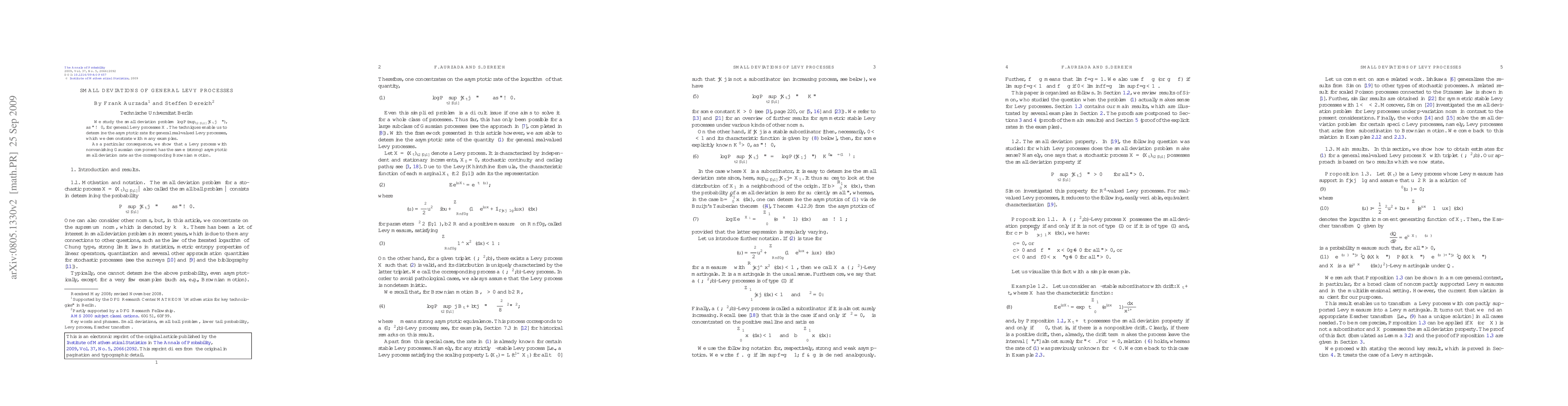 This paper investigates the small deviation behavior of general Lévy processes, determining the asymptotic rate as the deviation threshold approaches zero. It demonstrates that Lévy processes with nonvanishing Gaussian components exhibit the same small deviation rate as corresponding Brownian motions.