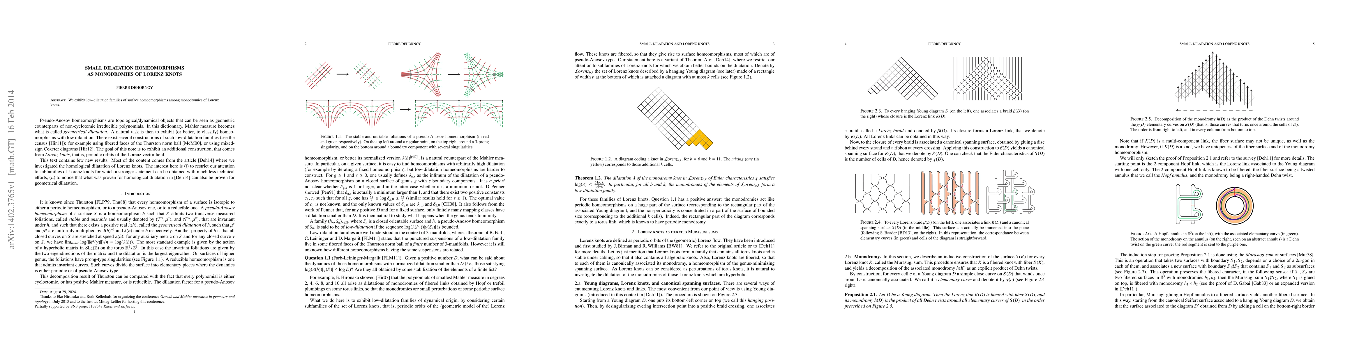 We exhibit low-dilatation families of surface homeomorphisms among monodromies of Lorenz knots.