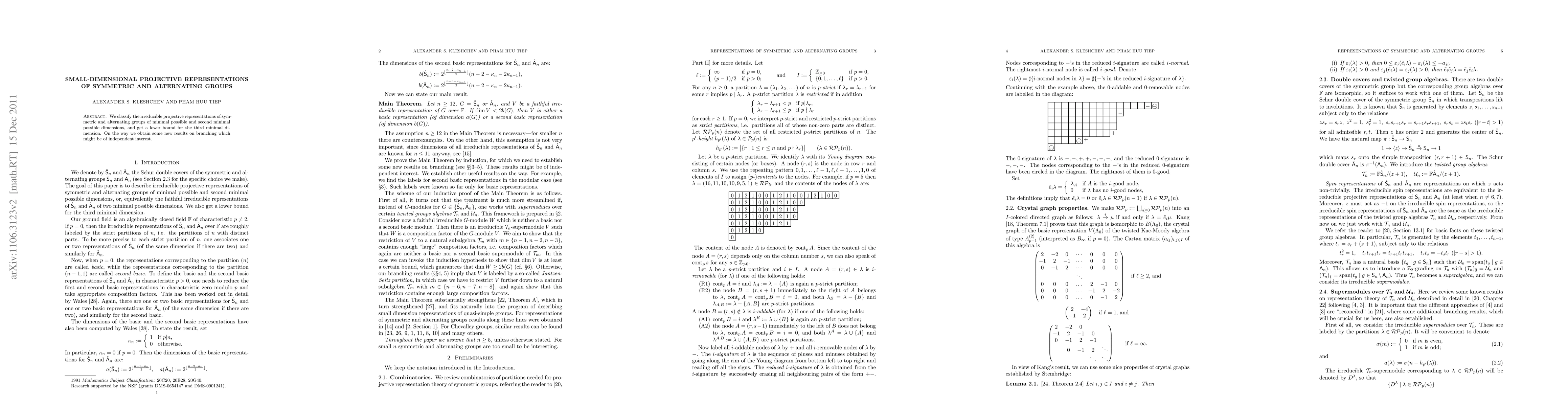 This paper classifies the irreducible projective representations of symmetric and alternating groups with minimal and second minimal dimensions, and provides a lower bound for the third minimal dimension. It also yields new branching results that may have independent significance.