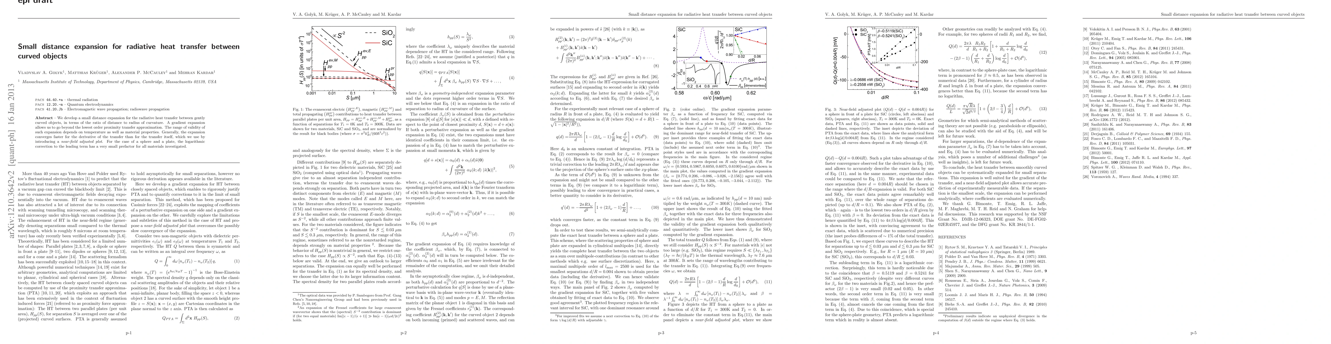 This research introduces a small distance expansion for radiative heat transfer between slightly curved objects, improving upon the proximity approximation. The method, based on gradient expansion, provides faster convergence for transfer derivative calculations. Validity depends on temperature and material properties, with a minor logarithmic correction for sphere-plate configurations across various materials.