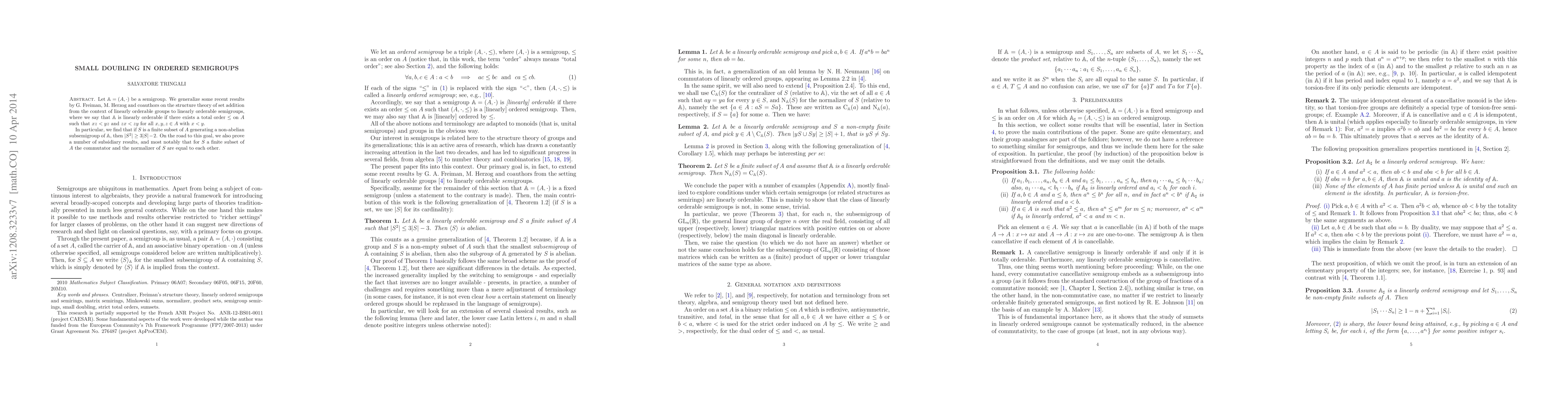 Let $\mathbb{A} = (A, \cdot)$ be a semigroup. We generalize some recent results by G. A. Freiman, M. Herzog and coauthors on the structure theory of set addition from the context of linearly orderable groups to linearly orderable semigroups, where we say that $\mathbb{A}$ is linearly orderable if there exists a total order $\le$ on $A$ such that $xz < yz$ and $zx < zy$ for all $x,y,z \in A$ with $x < y$. In particular, we find that if $S$ is a finite subset of $A$ generating a non-abelian subsemigroup of $\mathbb{A}$, then $|S^2| \ge 3|S|-2$. On the road to this goal, we also prove a number of subsidiary results, and most notably that for $S$ a finite subset of $A$ the commutator and the normalizer of $S$ are equal to each other.