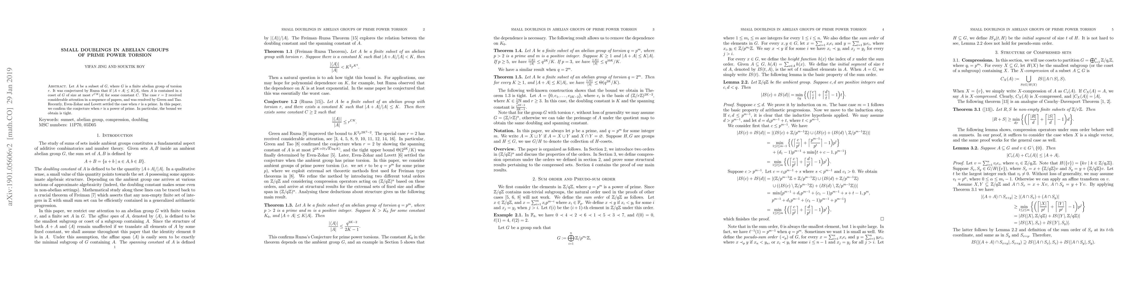 Researchers confirm a conjecture on finite abelian groups of prime power torsion size, showing that certain subset sizes imply containment in specific-sized cosets, with tight bounds obtained for powers of primes.