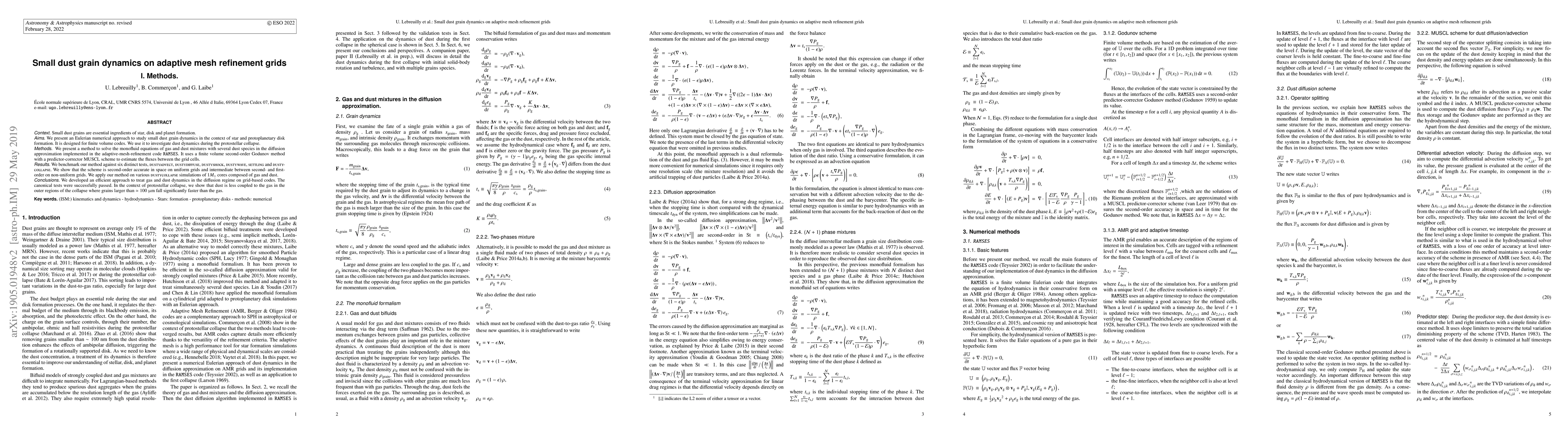 This paper introduces a numerical method for studying the dynamics of small dust grains in star and protoplanetary disk formation using adaptive-mesh-refinement grids. The method, implemented in RAMSES, successfully passes benchmark tests and demonstrates dust behavior during protostellar collapse, showing that larger grains fall faster than gas in outer regions.