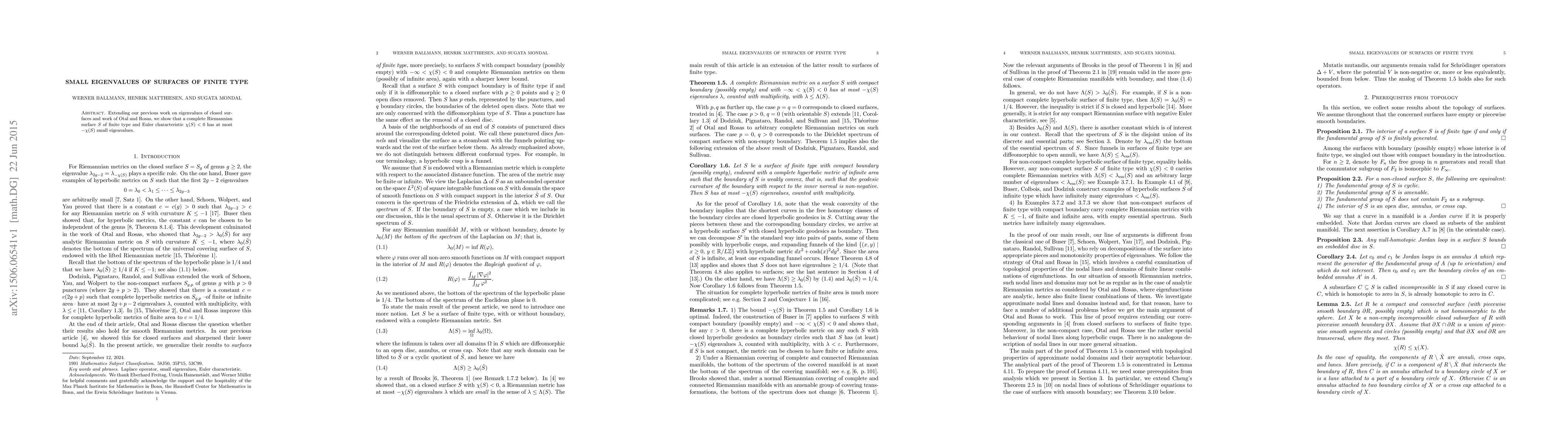 Extending our previous work on eigenvalues of closed surfaces and work of Otal and Rosas, we show that a complete Riemannian surface S of finite type and negative Euler characteristic has at most negative of the Euler characteristics many small eigenvalues.