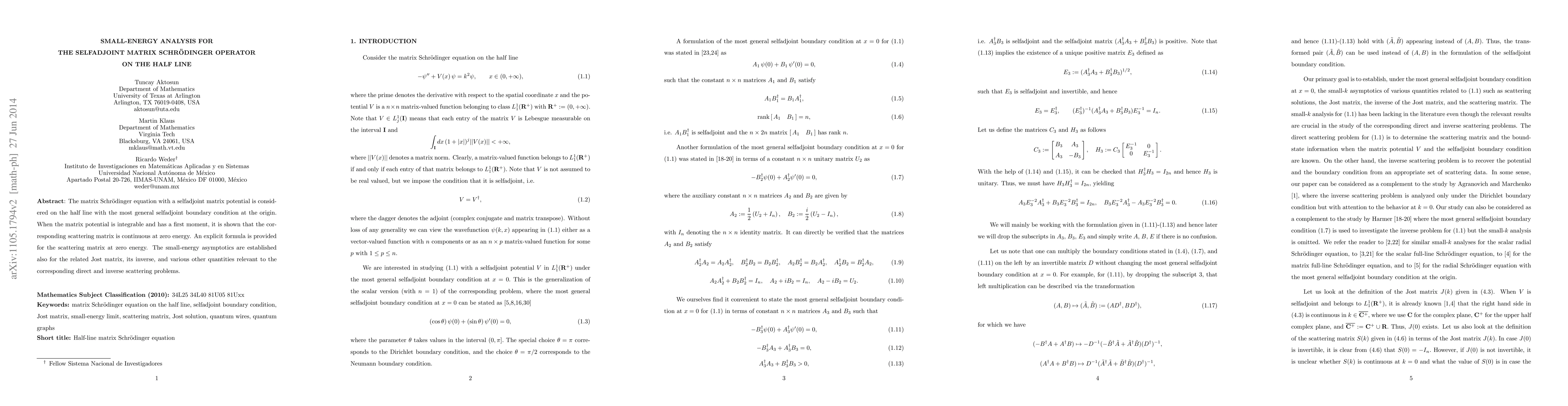 This paper investigates the small-energy behavior of the selfadjoint matrix Schrödinger operator on the half line, demonstrating that the scattering matrix is continuous at zero energy under certain conditions. It provides an explicit formula for the scattering matrix at zero energy and establishes the small-energy asymptotics for the Jost matrix and its inverse.