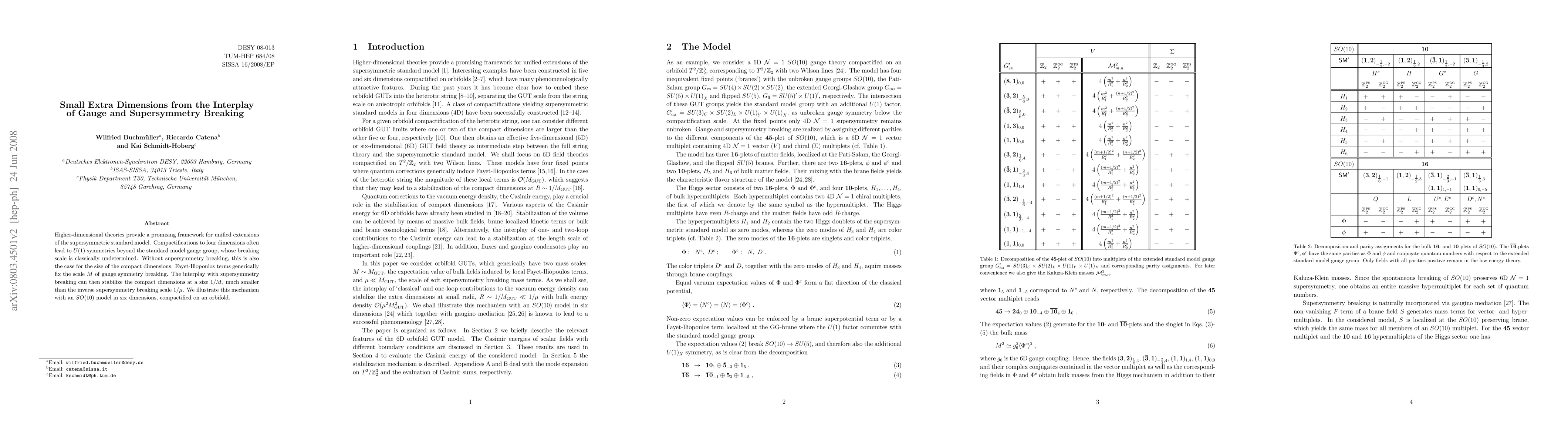 This paper explores how higher-dimensional theories can unify extensions of the supersymmetric standard model, demonstrating that the interplay between gauge and supersymmetry breaking can stabilize small extra dimensions at a size proportional to the scale of gauge symmetry breaking, rather than the larger scale of supersymmetry breaking. An SO(10) model compactified on an orbifold is used to illustrate this stabilization mechanism.