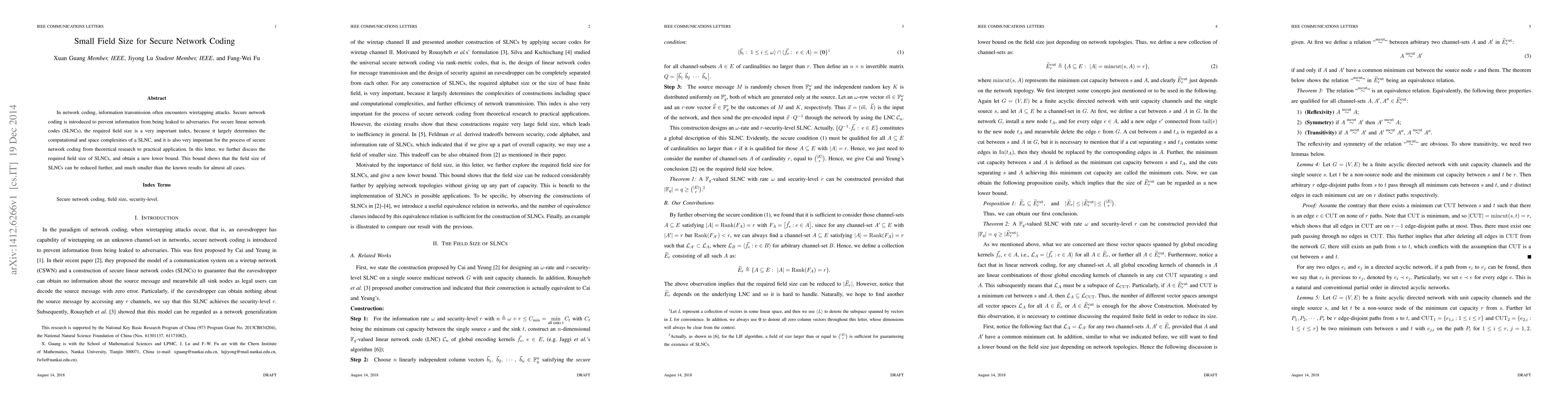 This paper investigates secure linear network codes (SLNCs) to reduce the required field size, which significantly impacts computational and space complexities. The authors derive a new lower bound demonstrating that the field size for SLNCs can be substantially smaller than previously known results in most scenarios.