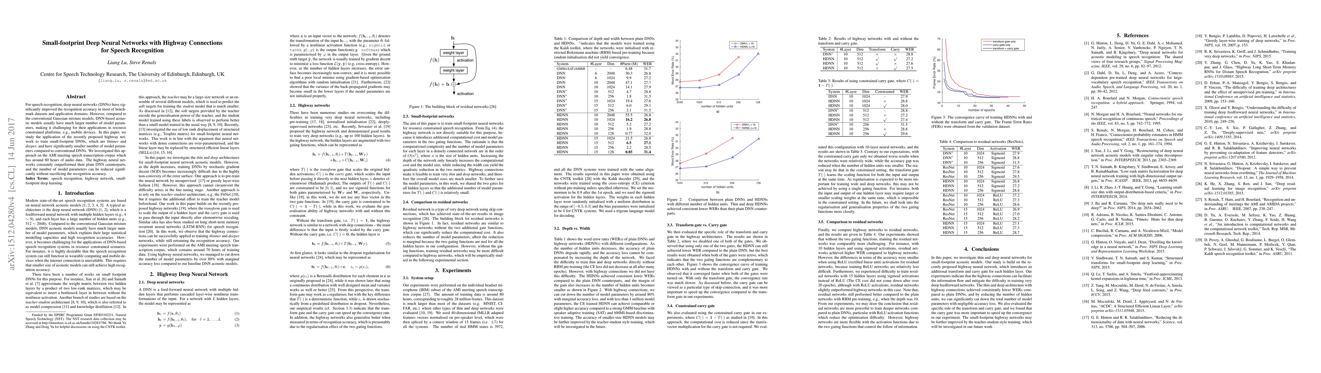 Researchers developed small-footprint deep neural networks for speech recognition using highway connections, achieving comparable accuracy to conventional DNNs with significantly fewer parameters.