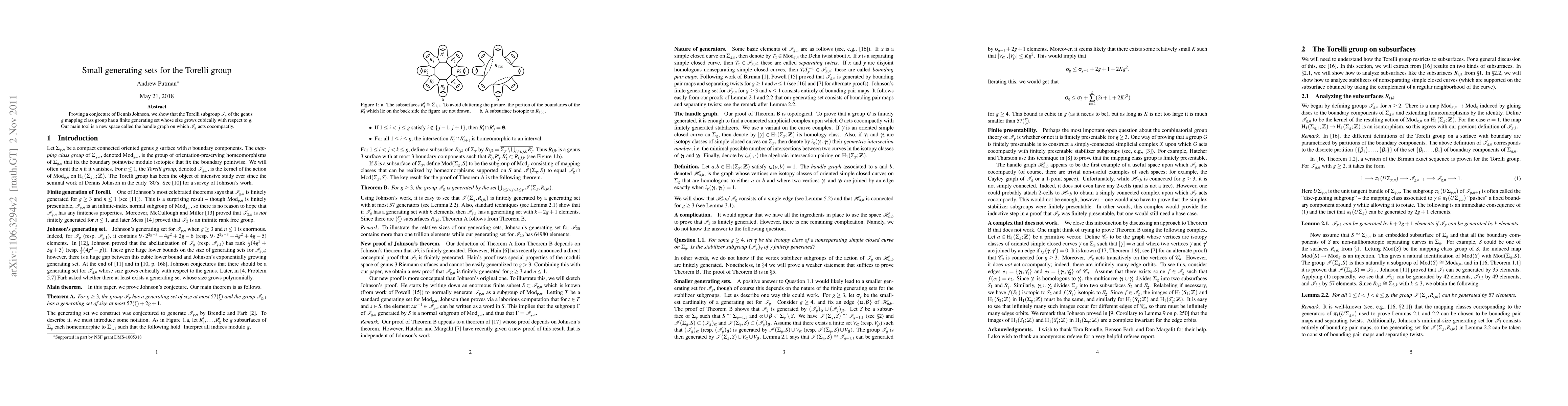 Researchers prove a conjecture about the Torelli group, showing it can be generated by a finite set that grows cubically with surface genus. A new space called the handle graph is used to demonstrate this result.