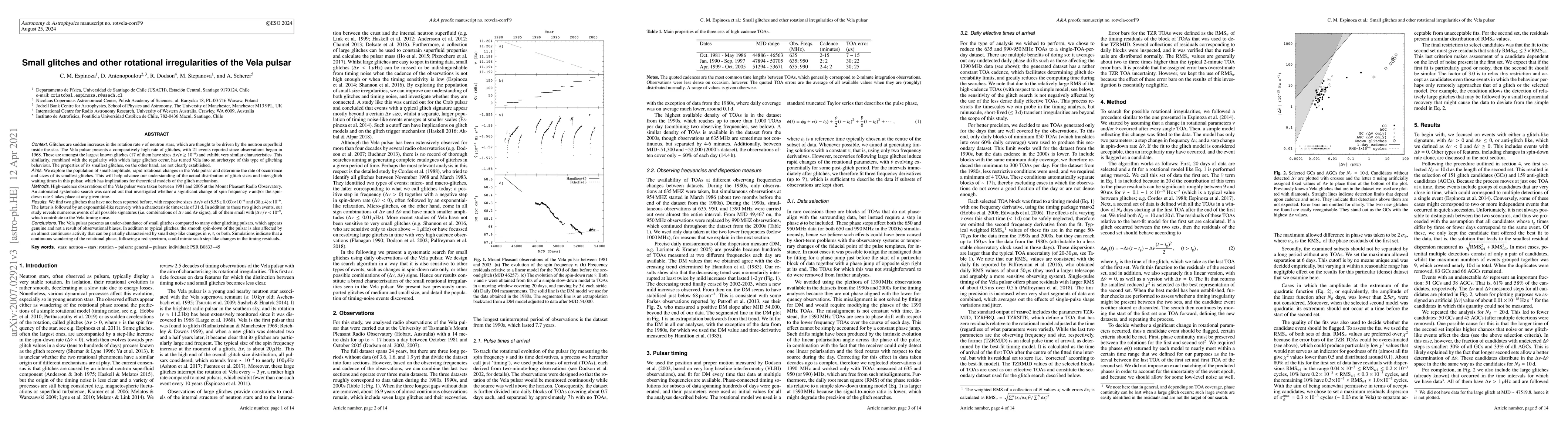 The Vela pulsar has been found to exhibit small glitches in its rotation rate, with two new events discovered through high-cadence observations, revealing a possible under-abundance of small glitches compared to other pulsars.