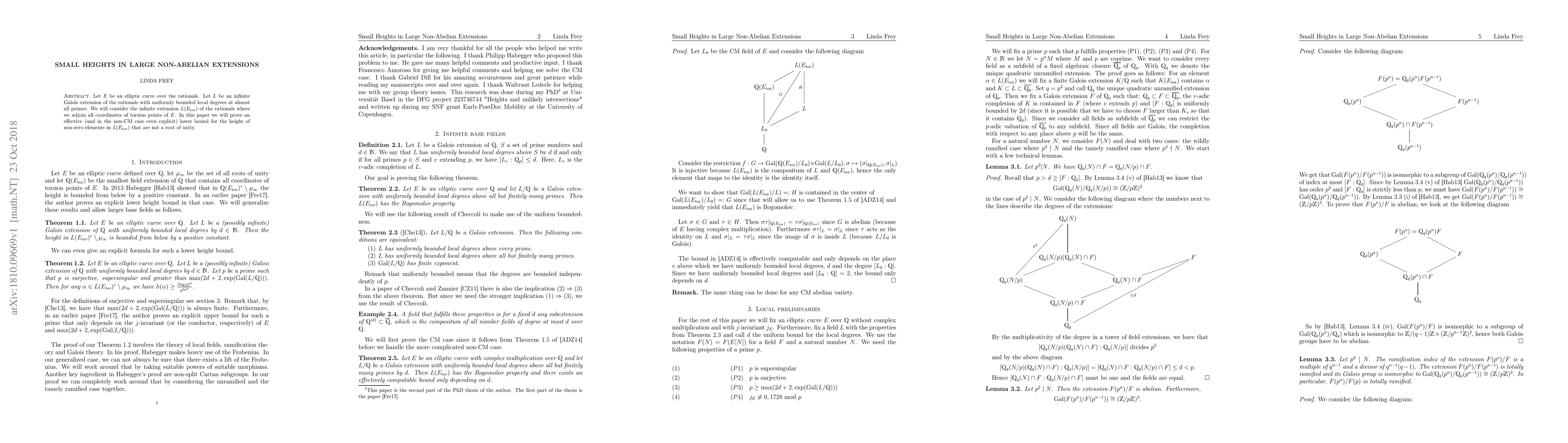 Let E be an elliptic curve over the rationals. Let L be an infinite Galois extension of the rationals with uniformly bounded local degrees at almost all primes. We will consider the infinite extension L(E_tor) of the rationals where we adjoin all coordinates of torsion points of E. In this paper we will prove an effective lower bound for the height of non-zero elements in L(E_tor) that are not a root of unity.