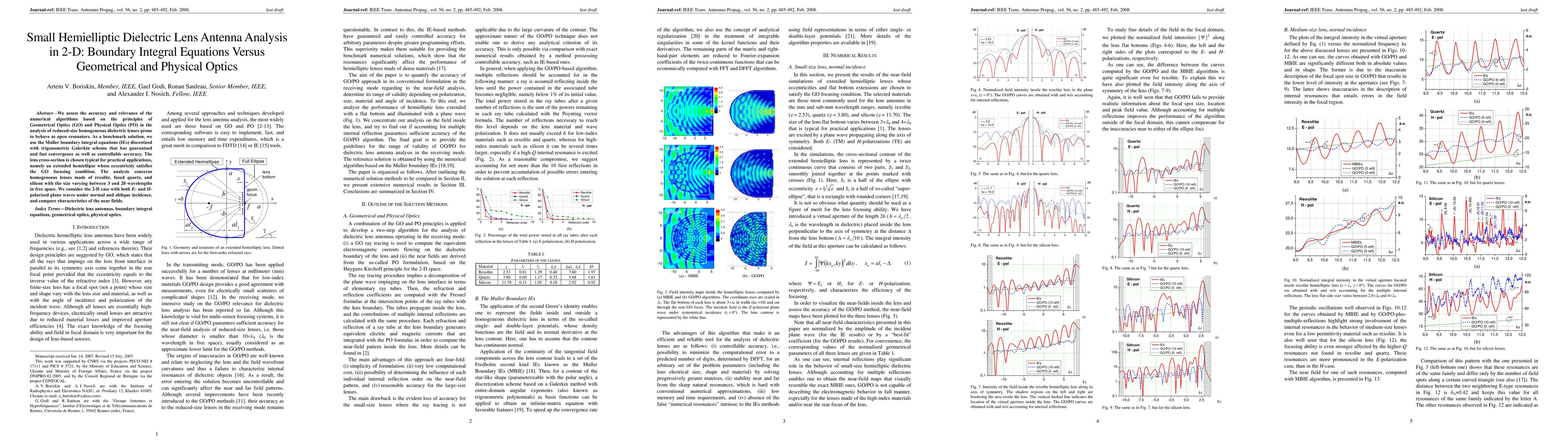 We assess the accuracy and relevance of the numerical algorithms based on the principles of Geometrical Optics (GO) and Physical Optics (PO) in the analysis of reduced-size homogeneous dielectric lenses prone to behave as open resonators. As a benchmark solution, we use the Muller boundary integral equations discretized with trigonometric Galerkin scheme that has guaranteed and fast convergence as well as controllable accuracy. The lens cross-section is chosen typical for practical applications, namely an extended hemiellipse whose eccentricity satisfies the GO focusing condition. The analysis concerns homogeneous lenses made of rexolite, fused quartz, and silicon with the size varying between 3 and 20 wavelengths in free space. We consider the 2-D case with both E- and H-polarized plane waves under normal and oblique incidence, and compare characteristics of the near fields.