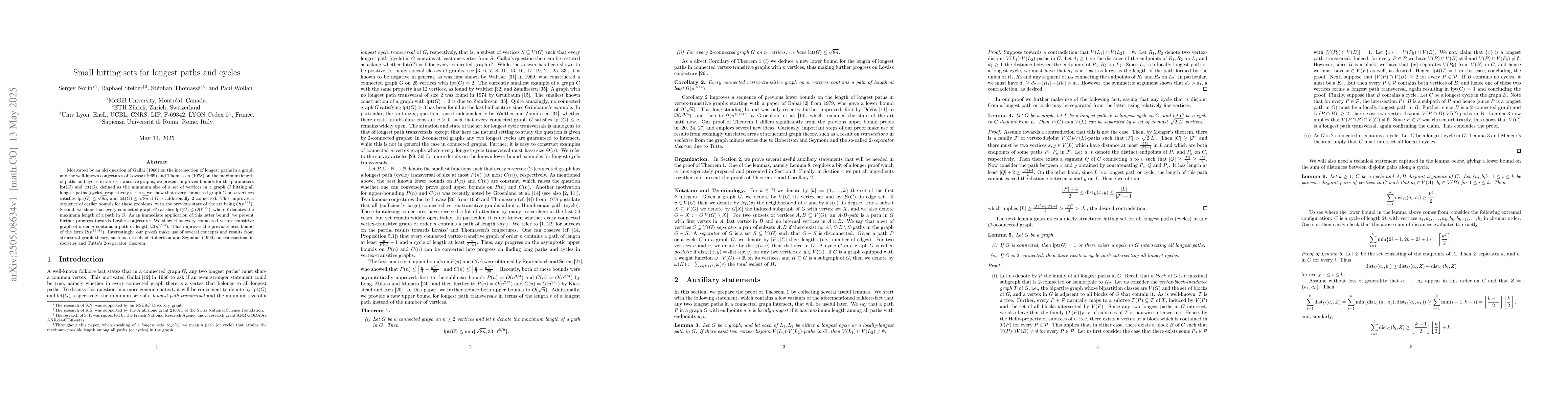 Motivated by an old question of Gallai (1966) on the intersection of longest paths in a graph and the well-known conjectures of Lov\'{a}sz (1969) and Thomassen (1978) on the maximum length of paths and cycles in vertex-transitive graphs, we present improved bounds for the parameters $\mathrm{lpt}(G)$ and $\mathrm{lct}(G)$, defined as the minimum size of a set of vertices in a graph $G$ hitting all longest paths (cycles, respectively). First, we show that every connected graph $G$ on $n$ vertices satisfies $\mathrm{lpt}(G)\le \sqrt{8n}$, and $\mathrm{lct}(G)\le \sqrt{8n}$ if $G$ is additionally $2$-connected. This improves a sequence of earlier bounds for these problems, with the previous state of the art being $O(n^{2/3})$. Second, we show that every connected graph $G$ satisfies $\mathrm{lpt}(G)\le O(\ell^{5/9})$, where $\ell$ denotes the maximum length of a path in $G$. As an immediate application of this latter bound, we present further progress towards Lov\'{a}sz conjecture: We show that every connected vertex-transitive graph of order $n$ contains a path of length $\Omega(n^{9/14})$. This improves the previous best bound of the form $\Omega(n^{13/21})$. Interestingly, our proofs make use of several concepts and results from structural graph theory, such as a result of Robertson and Seymour (1990) on transactions in societies and Tutte's $2$-separator theorem.