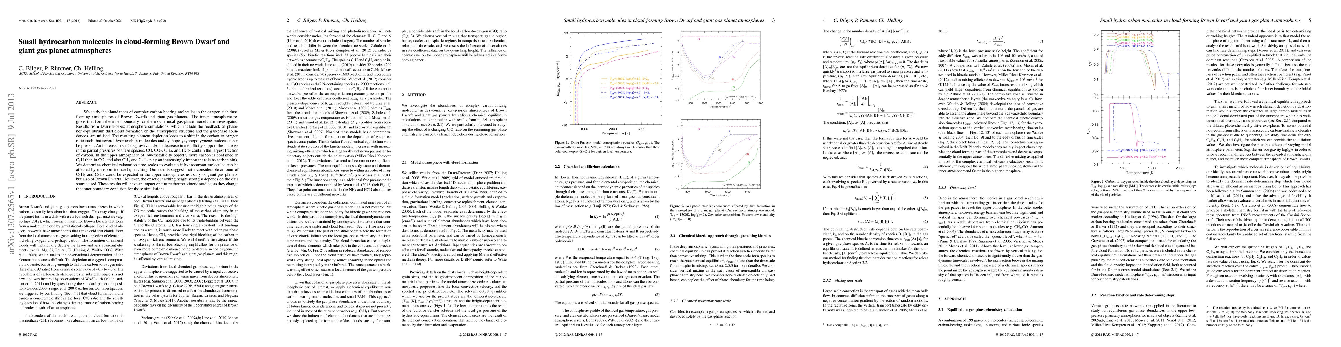 This research uses Drift-phoenix simulations to study hydrocarbon molecule abundances in Brown Dwarf and giant gas planet atmospheres. It finds that under certain conditions, significant amounts of C2H6 and C2H2 could exist, impacting inner boundary conditions for future thermal-kinetic studies.