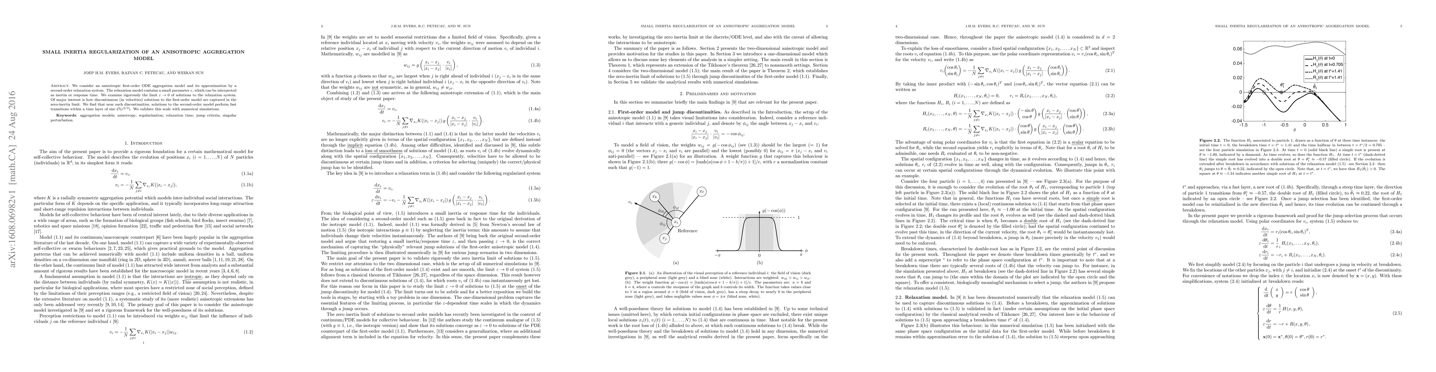 Researchers study how an anisotropic aggregation model with inertia (small response time) behaves as it approaches zero, finding fast transitions occur near discontinuities in velocities.