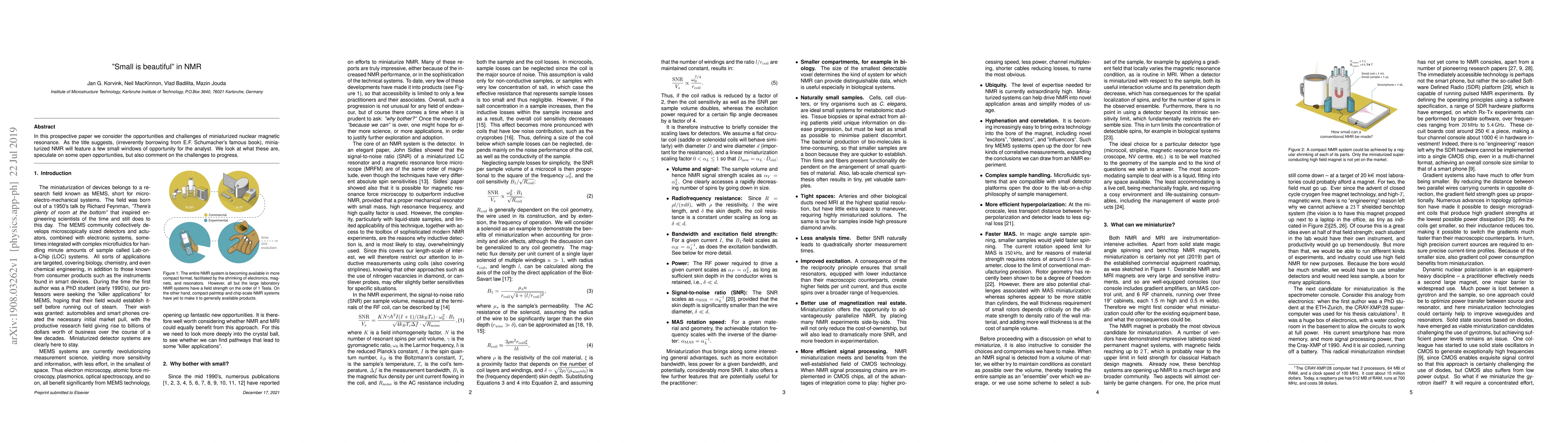 In this prospective paper we consider the opportunities and challenges of miniaturized nuclear magnetic resonance. As the title suggests, (irreverently borrowing from E.F. Schumacher's famous book), miniaturized NMR will feature a few small windows of opportunity for the analyst. We look at what these are, speculate on some open opportunities, but also comment on the challenges to progress.