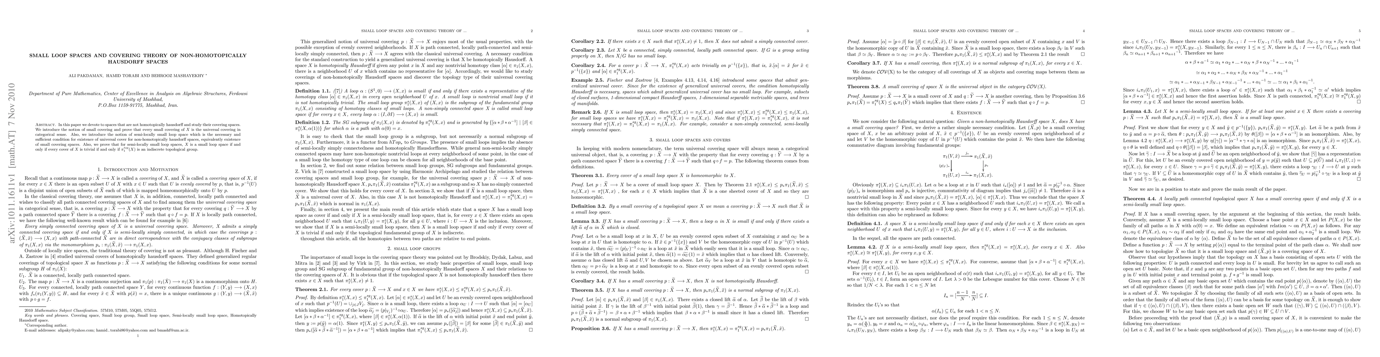 In this paper we devote to spaces that are not homotopically hausdorff and study their covering spaces. We introduce the notion of small covering and prove that every small covering of $X$ is the universal covering in categorical sense. Also, we introduce the notion of semi-locally small loop space which is the necessary and sufficient condition for existence of universal cover for non-homotopically hausdorff spaces, equivalently existence of small covering spaces. Also, we prove that for semi-locally small loop spaces, $X$ is a small loop space if and only if every cover of $X$ is trivial if and only if $\pi_1^{top}(X)$ is an indiscrete topological group.