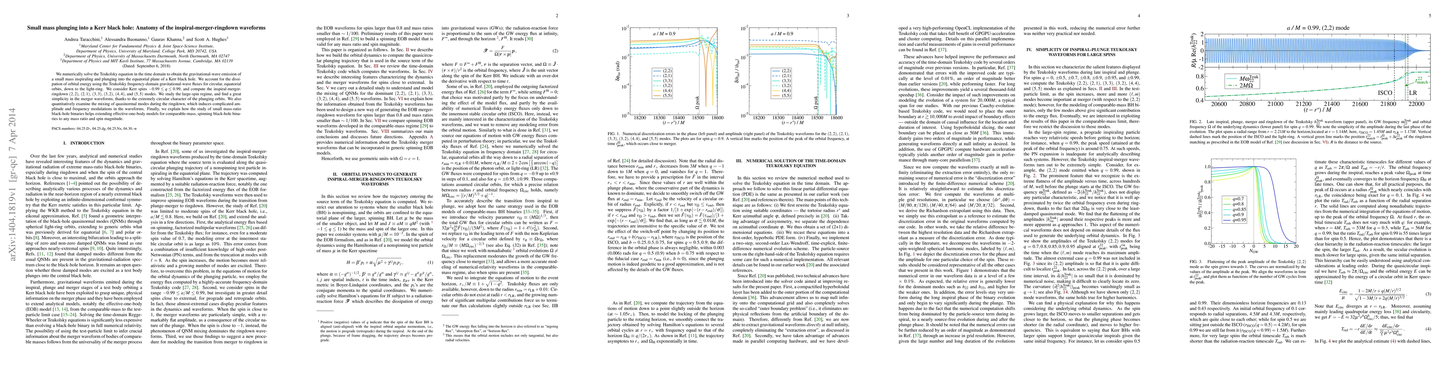 The use of the Teukolsky equation in the timedomain to compute inspiral-merger-ringdown waveforms produced by an inspiraling motion of a non-spinning test particle in the equatorial plane of a Kerr black hole, and the exploration of QNM interference in the ringdown stage.