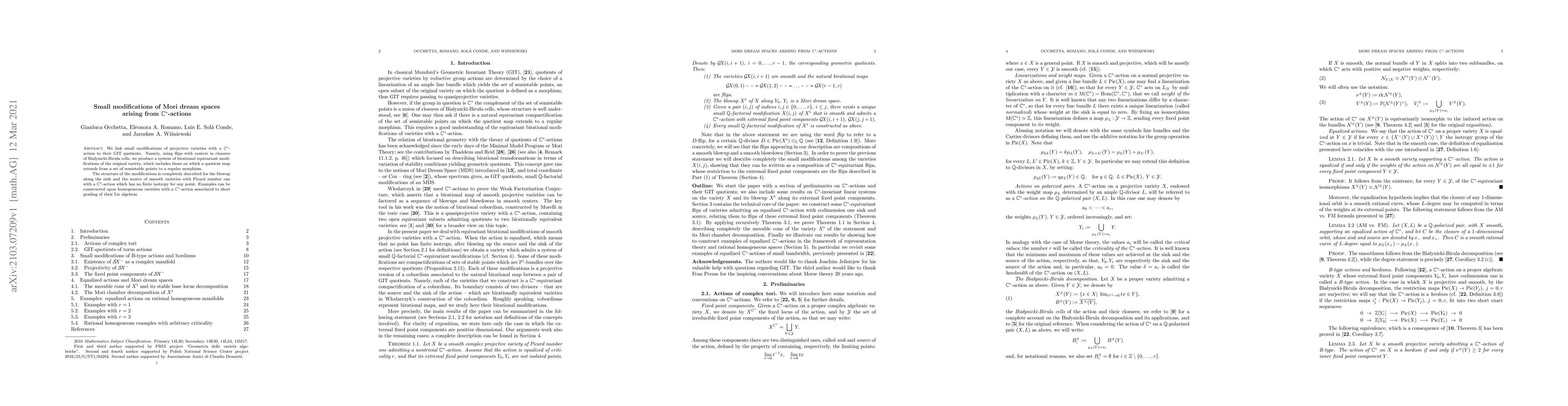 Summary: This paper explores how small modifications of projective varieties, driven by ${\mathbb C}^*$-actions, relate to their GIT quotients. It describes a system of birational equivariant modifications using flips, providing a complete structure for blowups along sources and sinks of smooth varieties with a ${\mathbb C}^*$-action.