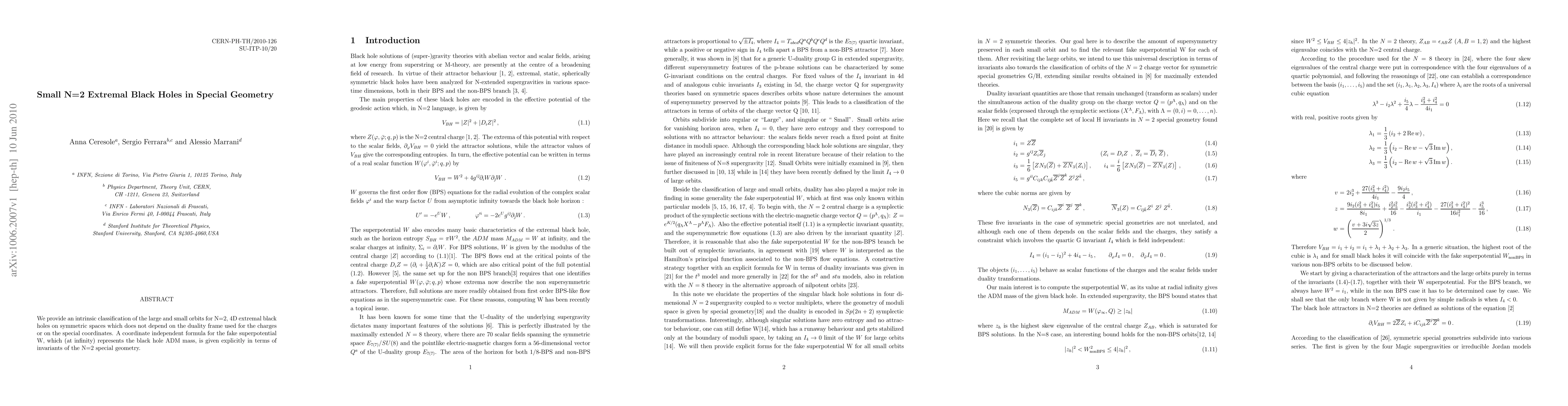 We provide an intrinsic classification of the large and small orbits for N=2, 4D extremal black holes on symmetric spaces which does not depend on the duality frame used for the charges or on the special coordinates. A coordinate independent formula for the fake superpotential W, which (at infinity) represents the black hole ADM mass, is given explicitly in terms of invariants of the N=2 special geometry.