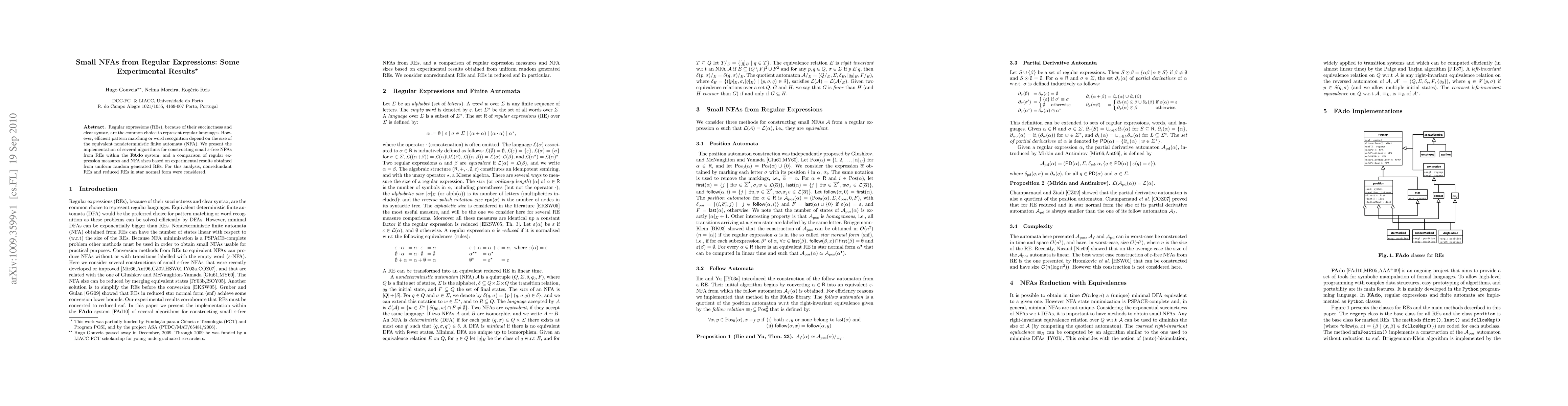 This paper presents algorithms for constructing small epsilon-free NFAs from regular expressions within the FAdo system and reports experimental results comparing the sizes of NFAs derived from various regular expressions, focusing on nonredundant and reduced forms.