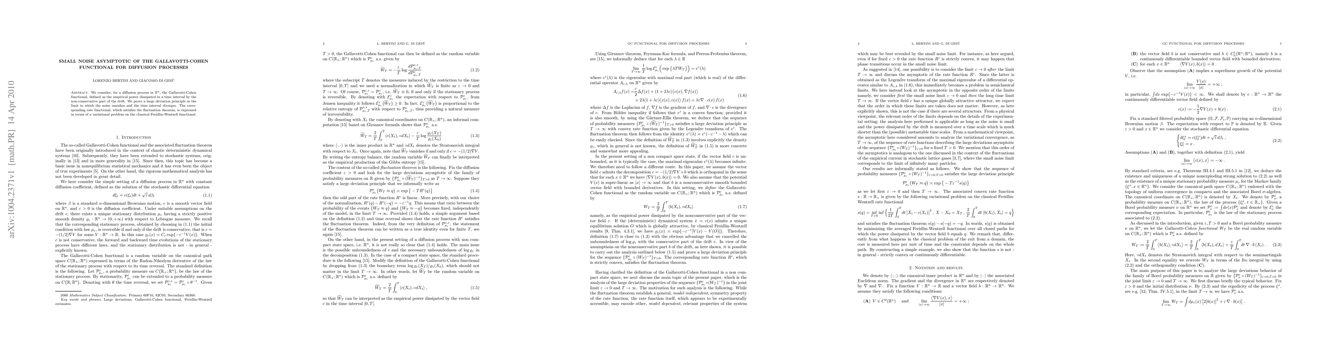 We consider, for a diffusion process in R^n, the Gallavotti-Cohen functional, defined as the empirical power dissipated in a time interval by the non-conservative part of the drift. We prove a large deviation principle in the limit in which the noise vanishes and the time interval diverges. The corresponding rate functional, which satisfies the fluctuation theorem, is expressed in terms of a variational problem on the classical Freidlin-Wentzell functional.