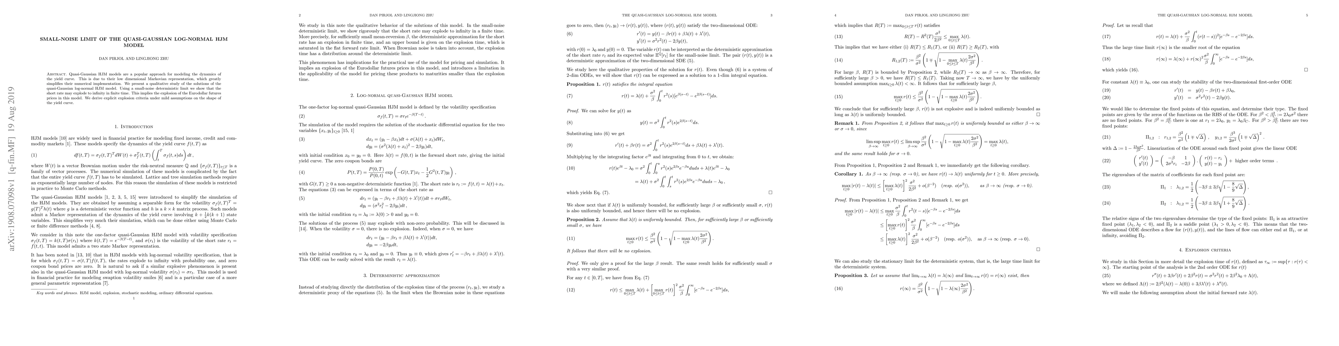 This paper investigates the quasi-Gaussian log-normal HJM model for yield curve dynamics, demonstrating that under small-noise conditions, the short rate can explode to infinity in finite time, leading to the explosion of Eurodollar futures prices. Explicit explosion criteria are derived based on the yield curve's shape.