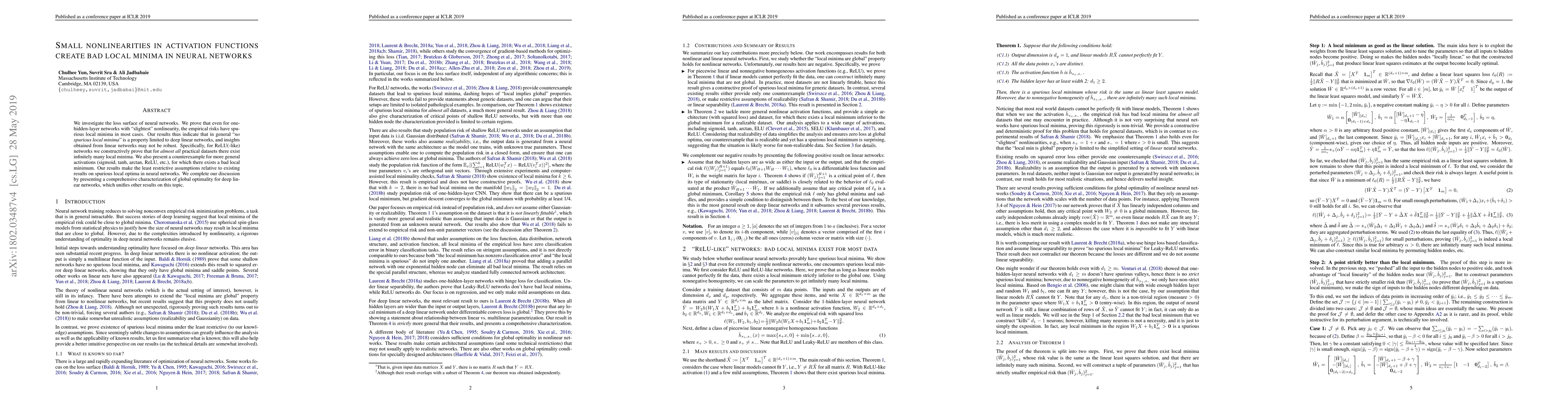 This paper demonstrates that small nonlinearities in neural network activation functions lead to the presence of bad local minima, challenging the notion that linear networks are free from such minima. It proves that even slight nonlinearities, such as those in ReLU networks, result in infinitely many local minima for practical datasets, thereby questioning the robustness of insights derived from linear networks.