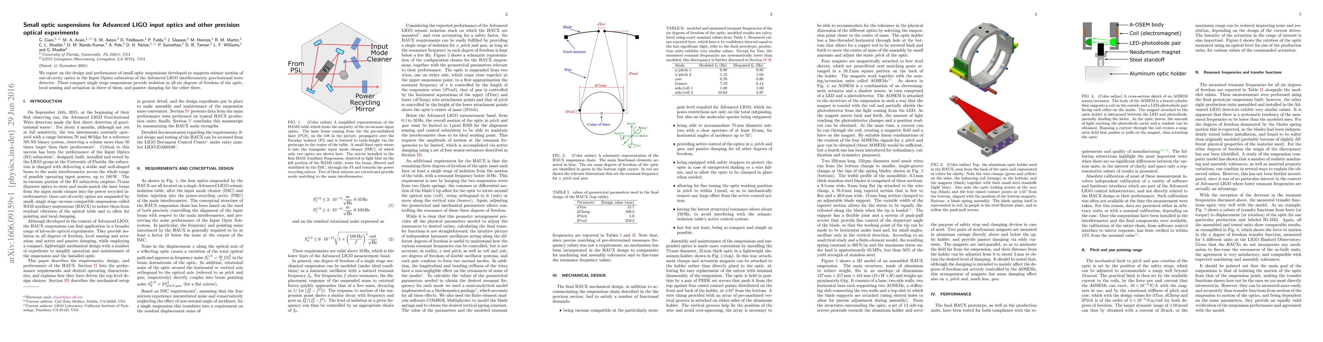 This paper details the design and effectiveness of compact optic suspensions for the Advanced LIGO gravitational wave detector, which isolate seismic motion in all six degrees of freedom, with active control in three and passive damping in the remaining three. These suspensions enhance precision in out-of-cavity optics.