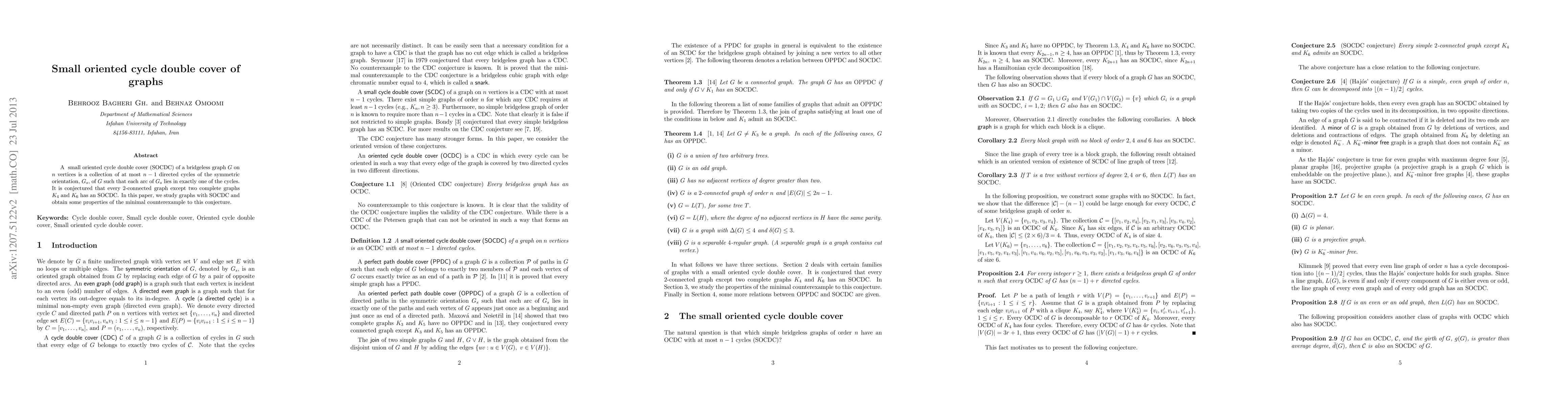 This paper explores the existence of small oriented cycle double covers (SOCDC) in bridgeless graphs, investigating the conjecture that every 2-connected graph, excluding $K_4$ and $K_6$, possesses an SOCDC. It examines the properties of potential minimal counterexamples to this conjecture.