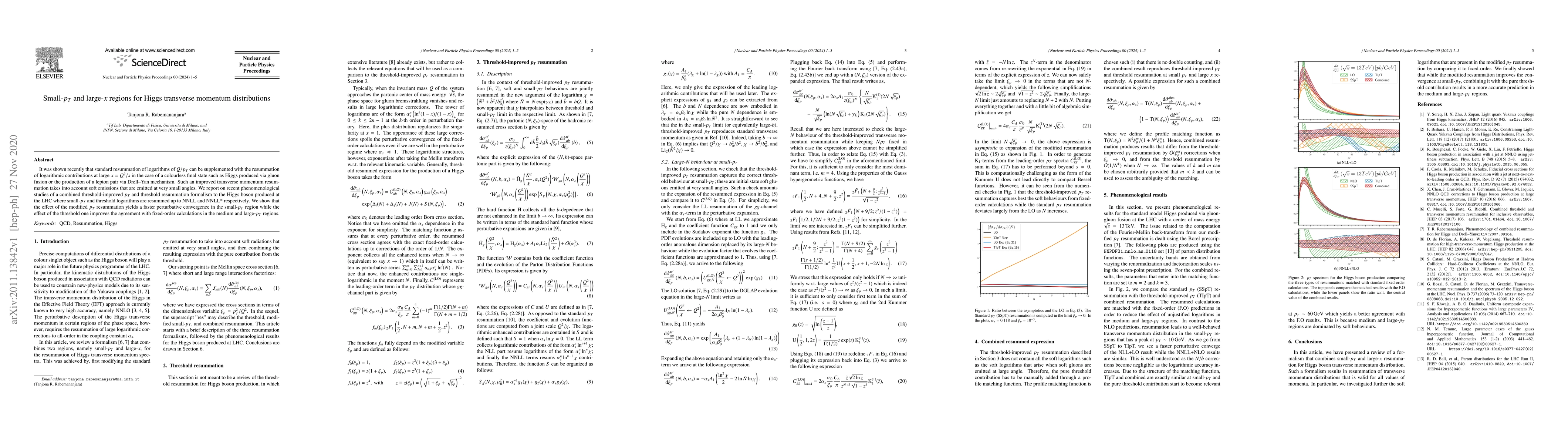 It was shown recently that standard resummation of logarithms of $Q/p_T$ can be supplemented with the resummation of logarithmic contributions at large $x=Q^2/s$ in the case of a colourless final state such as Higgs produced via gluon fusion or the production of a lepton pair via Drell--Yan mechanism. Such an improved transverse momentum resummation takes into account soft emissions that are emitted at very small angles. We report on recent phenomenological studies of a combined threshold-improved $p_T$ and threshold resummation formalism to the Higgs boson produced at the LHC where small-$p_T$ and threshold logarithms are resummed up to NNLL and NNLL* respectively. We show that the effect of the modified $p_T$ resummation yields a faster perturbative convergence in the small-$p_T$ region while the effect of the threshold one improves the agreement with fixed-order calculations in the medium and large-$p_T$ regions.