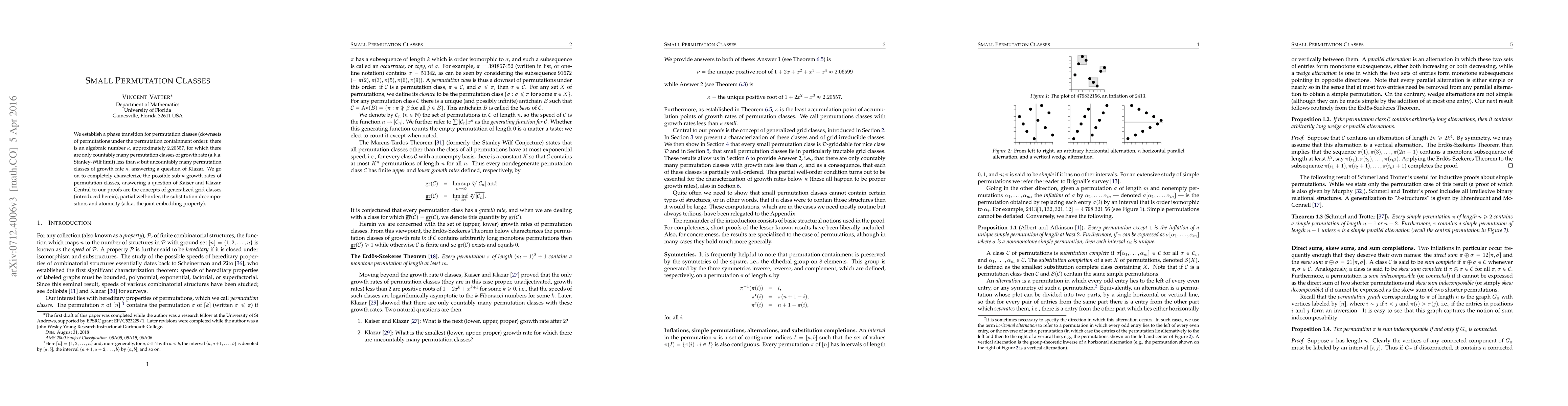 This paper establishes a phase transition in permutation classes, identifying an algebraic number $\kappa$ (approximately 2.20557) where there are countably many classes with growth rates below $\kappa$ but uncountably many with growth rate $\kappa$. The study also characterizes sub-$\kappa$ growth rates, using concepts like generalized grid classes and atomicity.