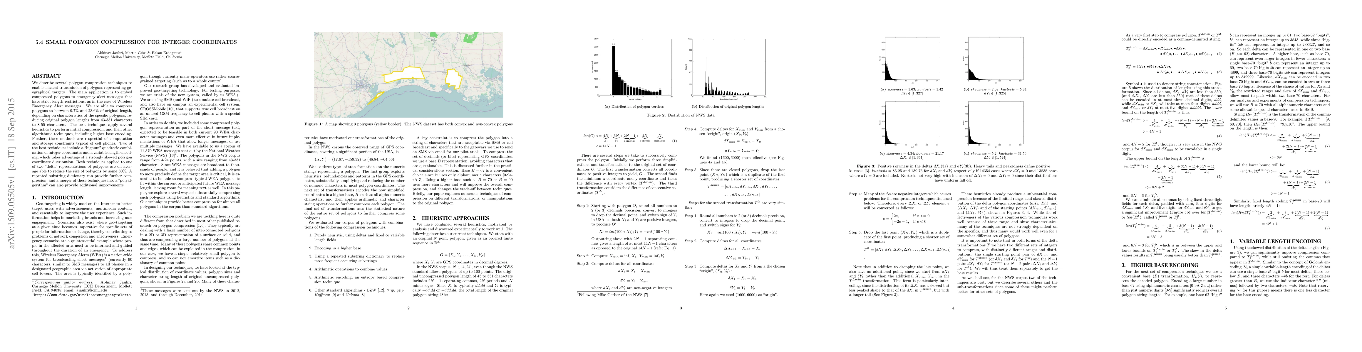We describe several polygon compression techniques to enable efficient transmission of polygons representing geographical targets. The main application is to embed compressed polygons to emergency alert messages that have strict length restrictions, as in the case of Wireless Emergency Alert messages. We are able to compress polygons to between 9.7% and 23.6% of original length, depending on characteristics of the specific polygons, reducing original polygon lengths from 43-331 characters to 8-55 characters. The best techniques apply several heuristics to perform initial compression, and then other algorithmic techniques, including higher base encoding. Further, these methods are respectful of computation and storage constraints typical of cell phones. Two of the best techniques include a \enquote{bignum} quadratic combination of integer coordinates and a variable length encoding, which takes advantage of a strongly skewed polygon coordinate distribution. Both techniques applied to one of two \enquote{delta} representations of polygons are on average able to reduce the size of polygons by some 80%. A repeated substring dictionary can provide further compression, and a merger of these techniques into a \enquote{polyalgorithm} can also provide additional improvements.