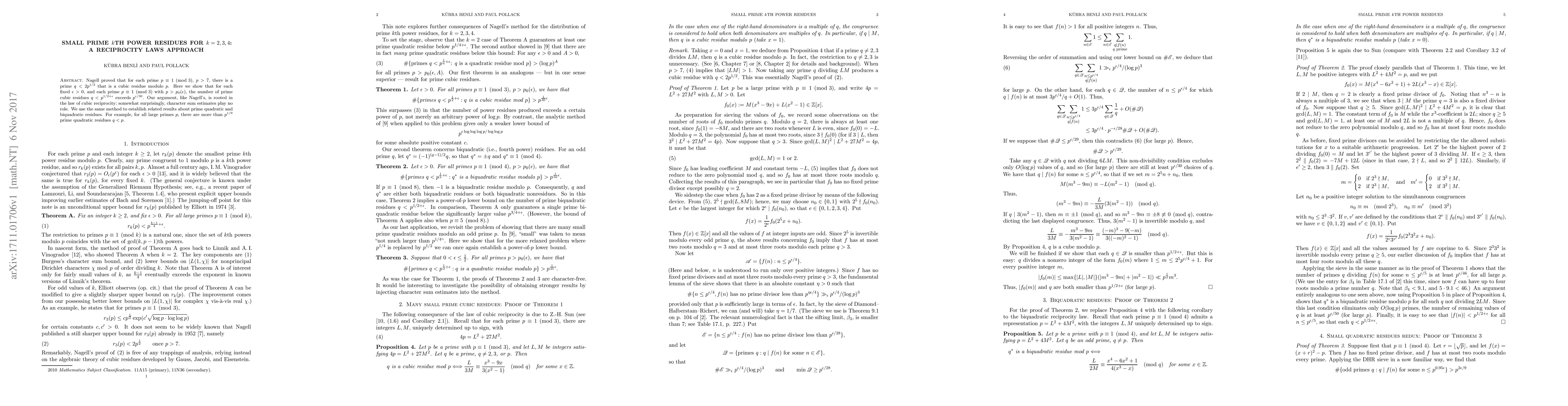 Nagell proved that for each prime $p\equiv 1\pmod{3}$, $p > 7$, there is a prime $q<2p^{1/2}$ that is a cubic residue modulo $p$. Here we show that for each fixed $\epsilon > 0$, and each prime $p\equiv 1\pmod{3}$ with $p > p_0(\epsilon)$, the number of prime cubic residues $q < p^{1/2+\epsilon}$ exceeds $p^{\epsilon/30}$. Our argument, like Nagell's, is rooted in the law of cubic reciprocity; somewhat surprisingly, character sum estimates play no role. We use the same method to establish related results about prime quadratic and biquadratic residues. For example, for all large primes $p$, there are more than $p^{1/9}$ prime quadratic residues $q