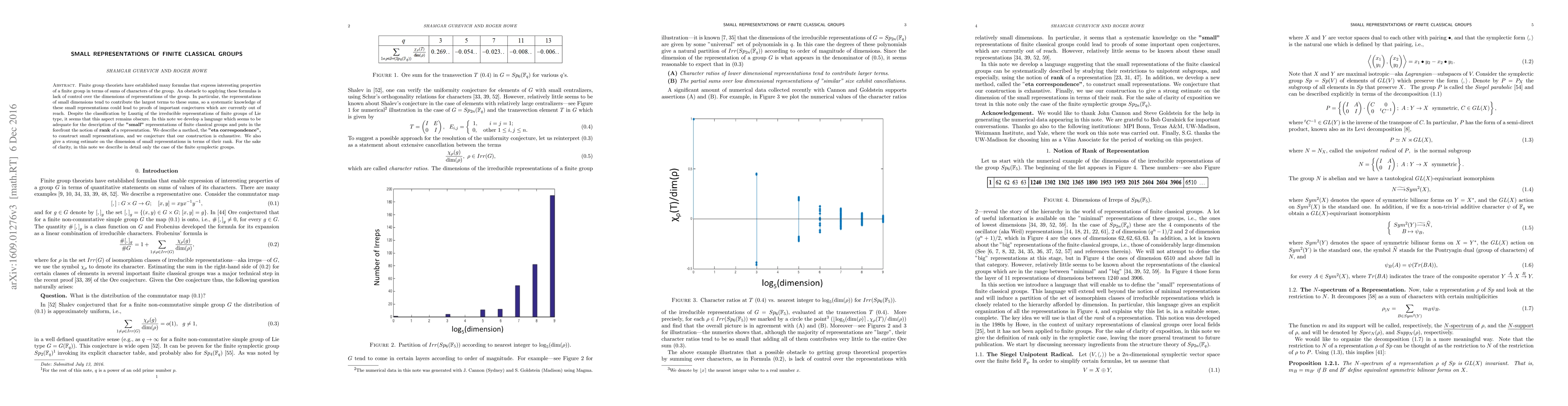 Finite group theorists have established many formulas that express interesting properties of a finite group in terms of sums of characters of the group. An obstacle to applying these formulas is lack of control over the dimensions of representations of the group. In particular, the representations of small dimensions tend to contribute the largest terms to these sums, so a systematic knowledge of these small representations could lead to proofs of important conjectures which are currently out of reach. Despite the classification by Lusztig of the irreducible representations of finite groups of Lie type, it seems that this aspect remains obscure. In this note we develop a language which seems to be adequate for the description of the "small" representations of finite classical groups and puts in the forefront the notion of rank of a representation. We describe a method, the "eta correspondence", to construct small representations, and we conjecture that our construction is exhaustive. We also give a strong estimate on the dimension of small representations in terms of their rank. For the sake of clarity, in this note we describe in detail only the case of the finite symplectic groups.