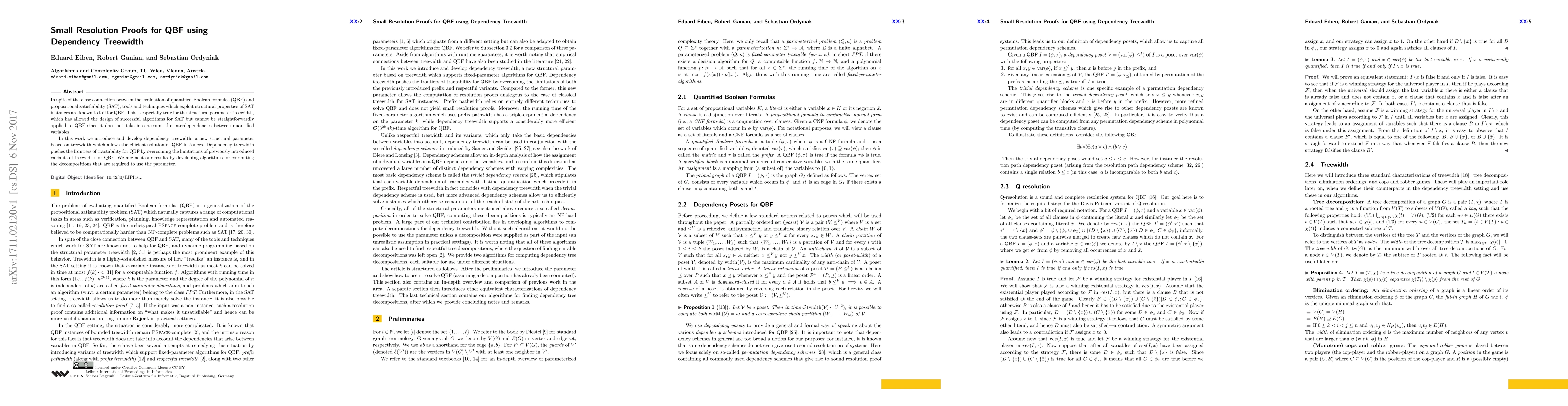This paper introduces dependency treewidth, a novel structural parameter for quantified Boolean formulas (QBF) that addresses limitations of traditional treewidth, enabling efficient QBF solving by considering interdependencies between quantified variables. The authors also develop algorithms for computing these decompositions.