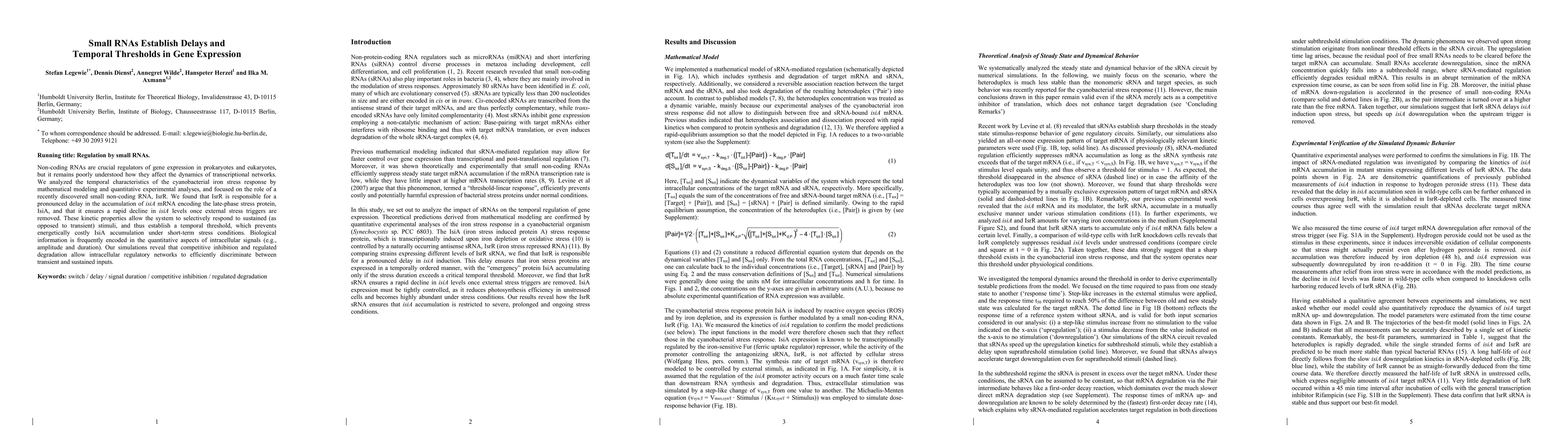 This finding reveals the importance of non-coding RNAs in establishing temporal thresholds and discriminating between transient and sustained stimuli in prokaryotic cells.