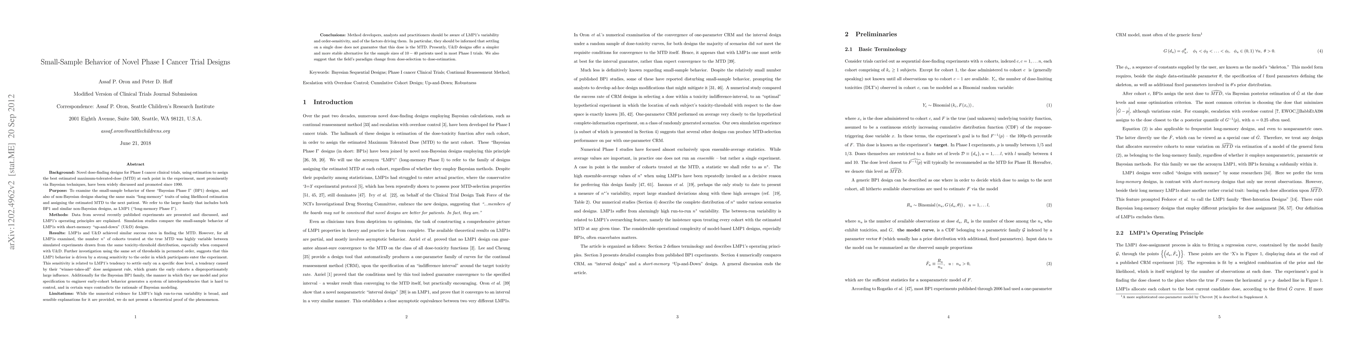 Novel dose-finding designs, using estimation to assign the best estimated maximum- tolerated-dose (MTD) at each point in the experiment, most commonly via Bayesian techniques, have recently entered large-scale implementation in Phase I cancer clinical trials. We examine the small-sample behavior of these "Bayesian Phase I" (BP1) designs, and also of non-Bayesian designs sharing the same main "long-memory" traits (hereafter: LMP1s). For all LMP1s examined, the number of cohorts treated at the true MTD (denoted here as n*) was highly variable between numerical runs drawn from the same toxicity-threshold distribution, especially when compared with "up-and-down" (U&D) short-memory designs. Further investigation using the same set of thresholds in permuted order, produced a nearly-identical magnitude of variability in n*. Therefore, this LMP1 behavior is driven by a strong sensitivity to the order in which toxicity thresholds appear in the experiment. We suggest that the sensitivity is related to LMP1's tendency to "settle" early on a specific dose level - a tendency caused by the repeated likelihood-based "winner-takes-all" dose assignment rule, which grants the early cohorts a disproportionately large influence upon experimental trajectories. Presently, U&D designs offer a simpler and more stable alternative, with roughly equivalent MTD estimation performance. A promising direction for combining the two approaches is briefly discussed (note: the '3+3' protocol is not a U&D design).
